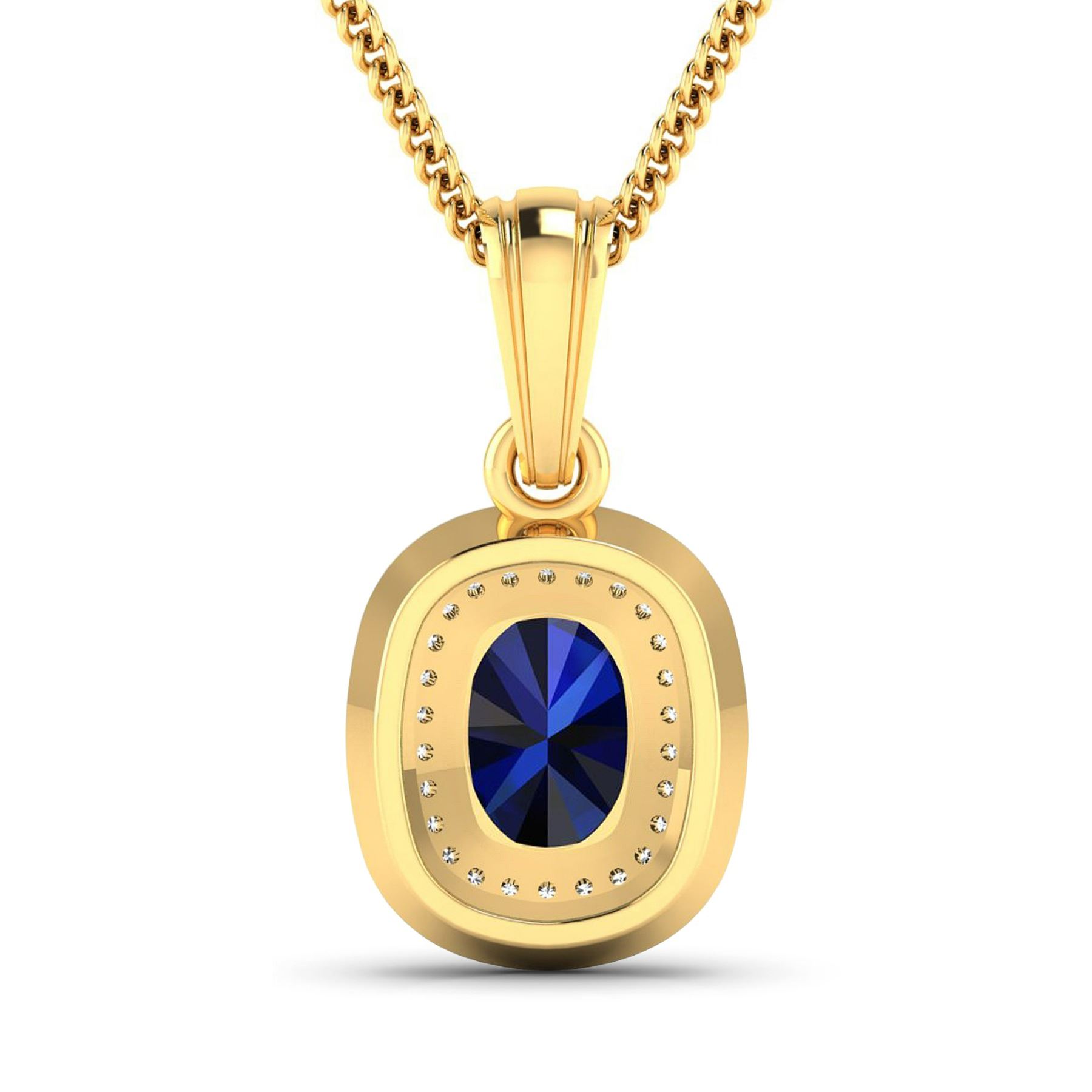 14KT Yellow Gold 1.3ct Blue Sapphire and Diamond Pendant with Chain