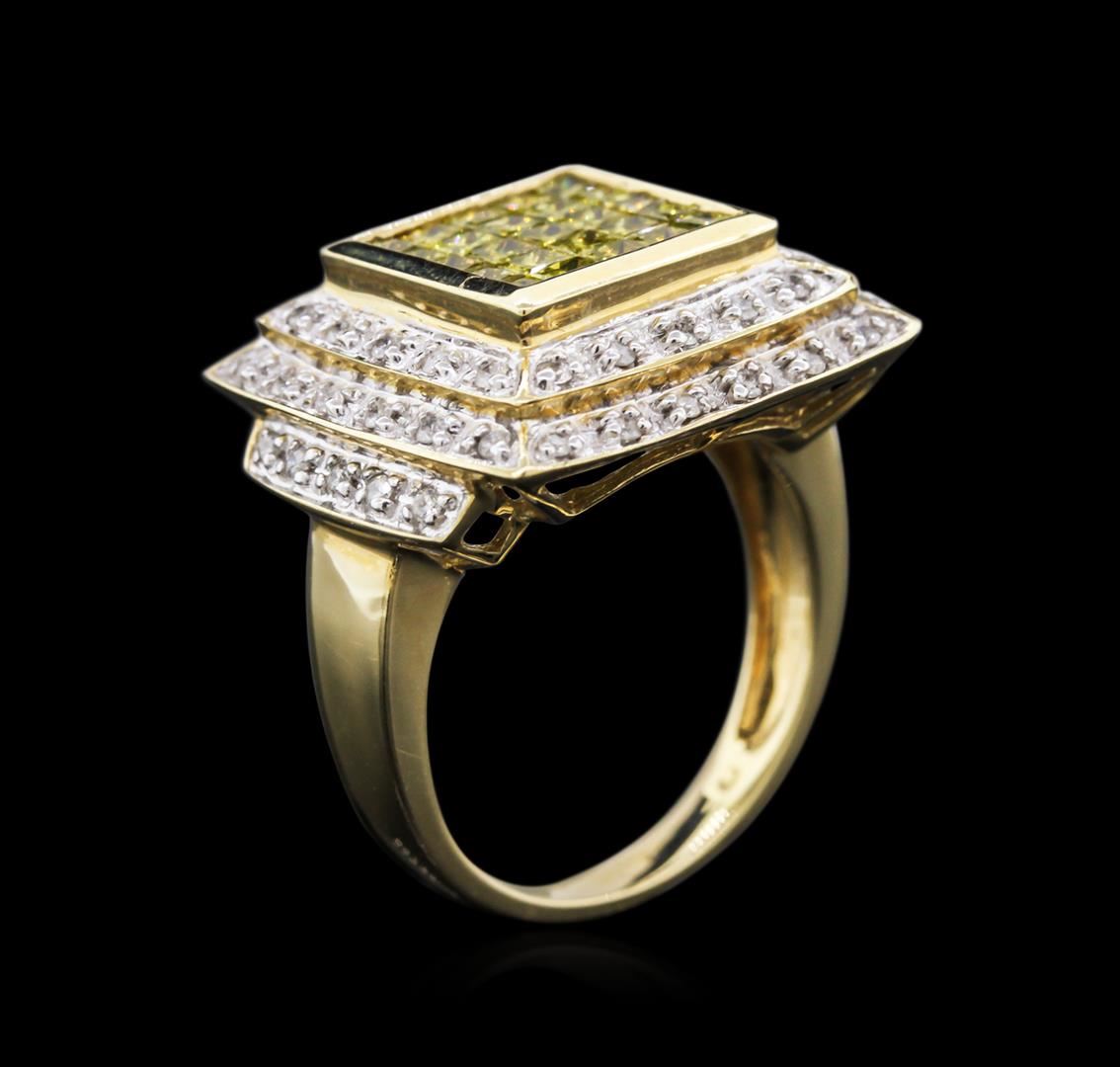 One ring featuring: 14KT yellow gold weighing 6.22 grams containing 25 treated yellow diamonds with a total weight of 1.04ct and 54 round diamonds with a total weight of 0.37ct.