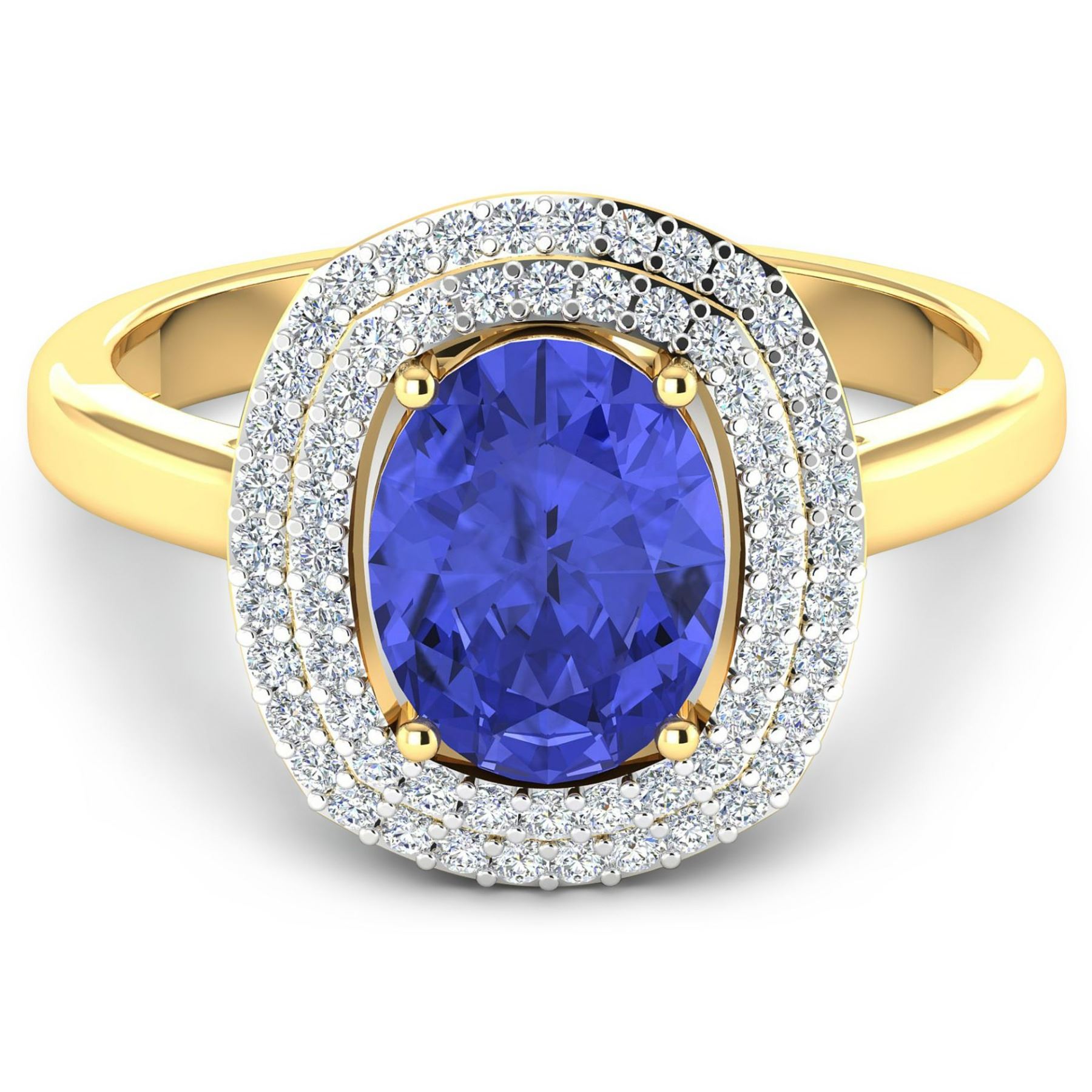 1 Tanzanite stone with a total weight of 1.41cts. Tanzanite (AA+) Oval 9x7mm - 1Pc + White Diamond F/C Round 1.00mm - 62Pcs (I1-I2/I color). 0.28cts of Diamonds. Total weight of this ring is 2.63 grams. Ring size 7.
