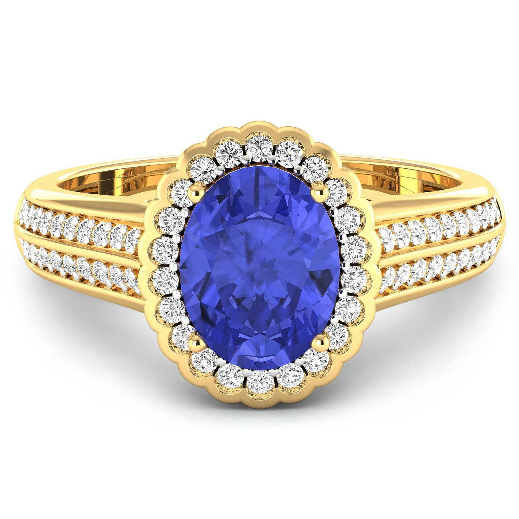 Tanzanite (AA+) Oval 9x7mm - 1Pc + White Diamond F/C Round 1.20mm - 30Pcs + White Diamond F/C Round 1.10mm - 20Pcs + White Diamond F/C Round 1.00mm - 12Pcs ( White Pan Rhodium ) (I1-I2/I color). Total weight of gemstone is 1.41cts. Total weight of Diamonds is 0.42cts. Total weight of this ring is 3.58 grams. Ring size 7.
