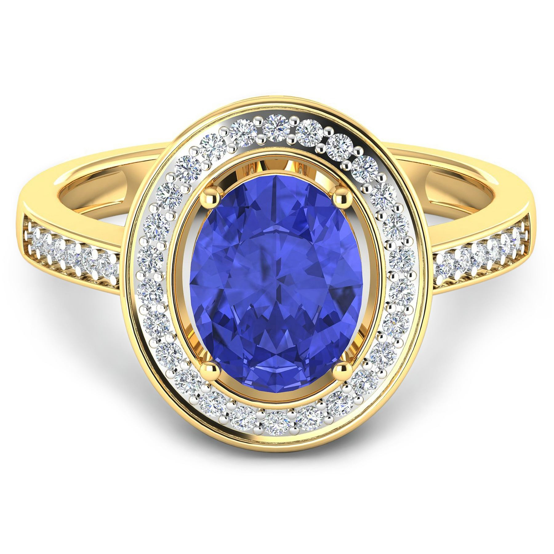 Tanzanite (AA+) Oval 9x7mm - 1Pc + White Diamond F/C Round 1.10mm - 26Pcs + White Diamond F/C Round 1.00mm - 12Pcs ( White Pan Rhodium ) (I1-I2/I color) Total weight of gemstone is 1.41cts. Total Diamond weight is 0.22cts. Total weight of this ring is 3.29 grams. Ring size 7.