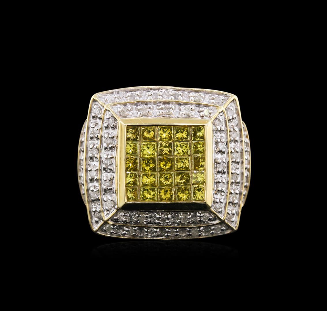 One ring featuring: 14KT yellow gold weighing 6.22 grams containing 25 treated yellow diamonds with a total weight of 1.04ct and 54 round diamonds with a total weight of 0.37ct.
