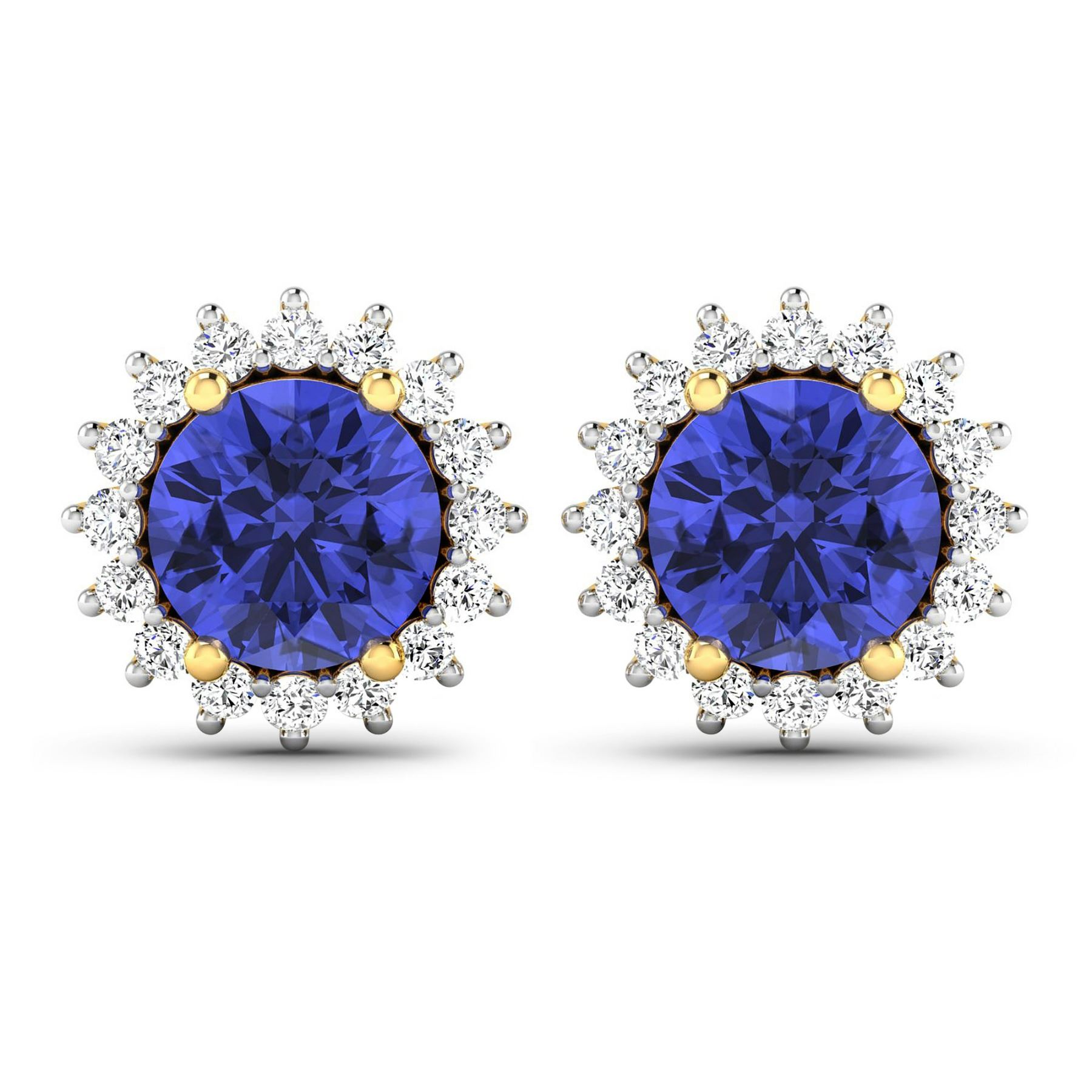 Tanzanite (AA+) Round 6.00mm - 2Pcs + White Diamond F/C Round 1.30mm - 32Pcs ( Push-Post ) ( White Pan Rhodium ) ( I1-I2/I color ) Total weight of gemstones is 1.44cts. Total Diamond weight is 0.32cts. Total weight of these earrings are 2.16 grams.