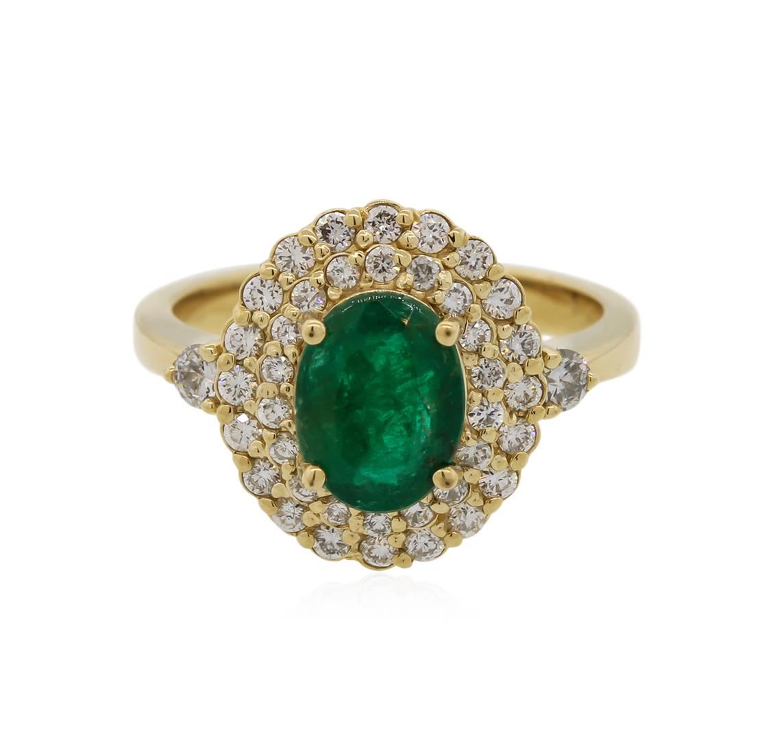 One ring featuring: 14KT yellow gold weighing 4.45 grams containing one emerald with a total weight of 1.45ct and diamonds with a total weight of 0.66ct.