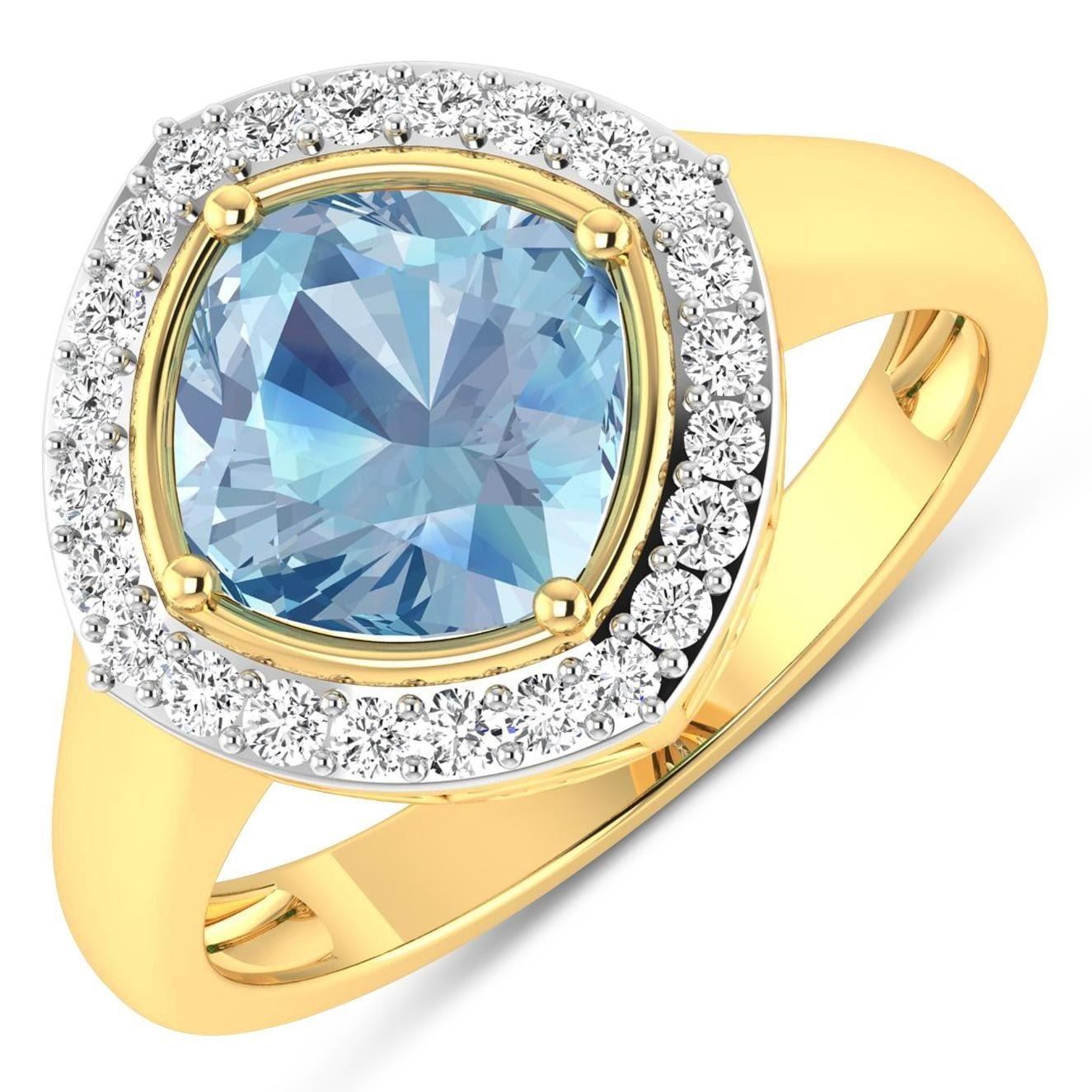 Aquamarine (AA+) Cushion 8.00mm - 1Pc + White Diamond F/C Round 1.30mm - 24Pcs ( White Pan Rhodium ) ( SI-2/HI ) Total weight of gemstone is 1.48cts. Total Diamond weight is 0.24cts. Total weight of this ring is 3.49 grams. Ring size 7.