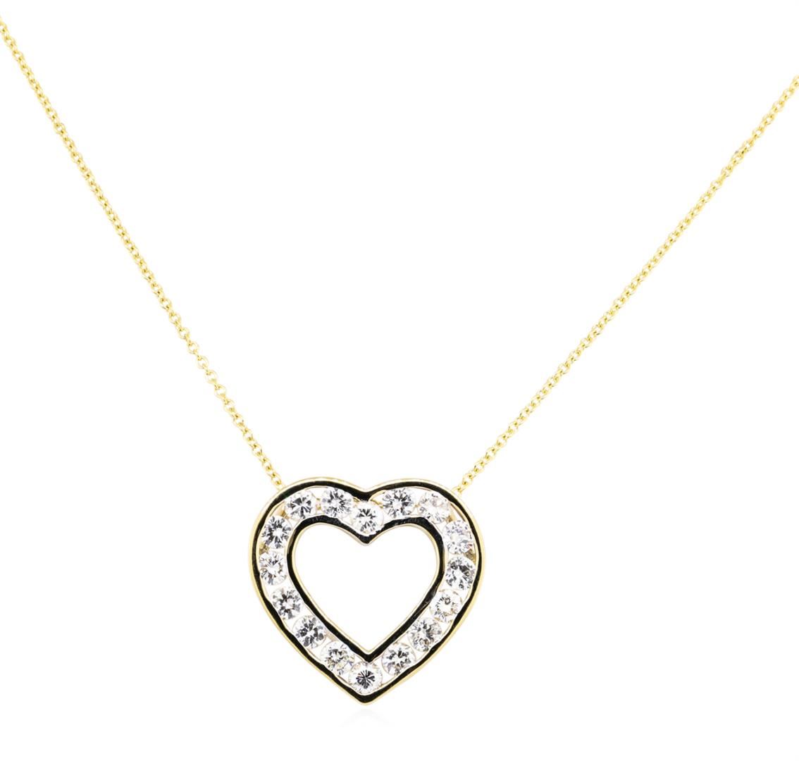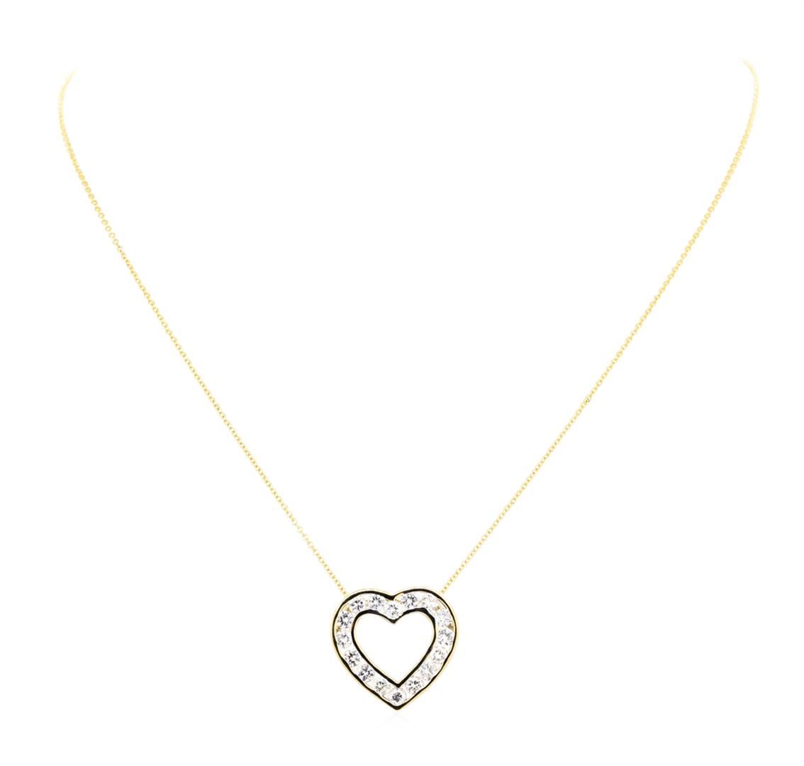 One pendant with chain featuring: 14KT yellow gold weighing 3.3 grams containing diamonds weighing 1.50ctw. The cable link chain measures approximately sixteen inches in length.