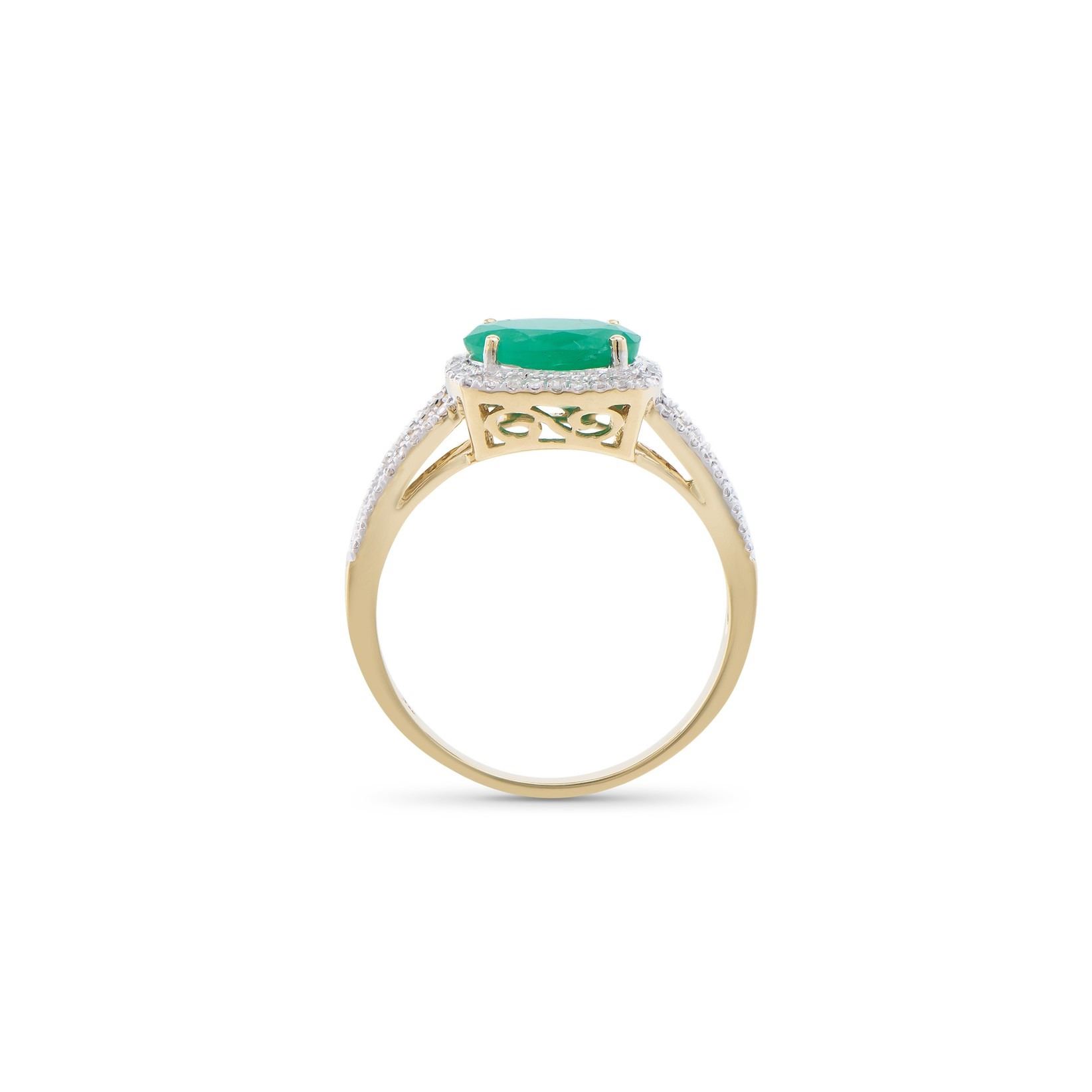 (1) Emerald with a total weight of 1.50cts. (64) round Diamonds with a total weight of 0.27cts with a color of H-I and clarity of I1-I2. Total weight of this ring is 2.60 grams. Ring size is 7.5.