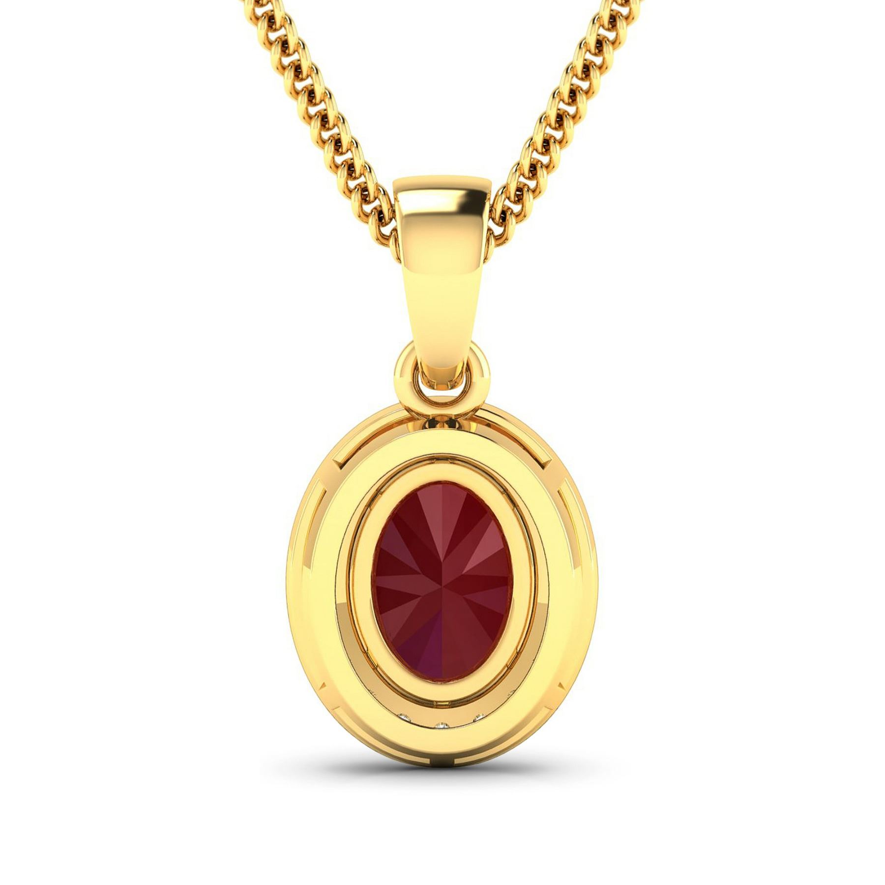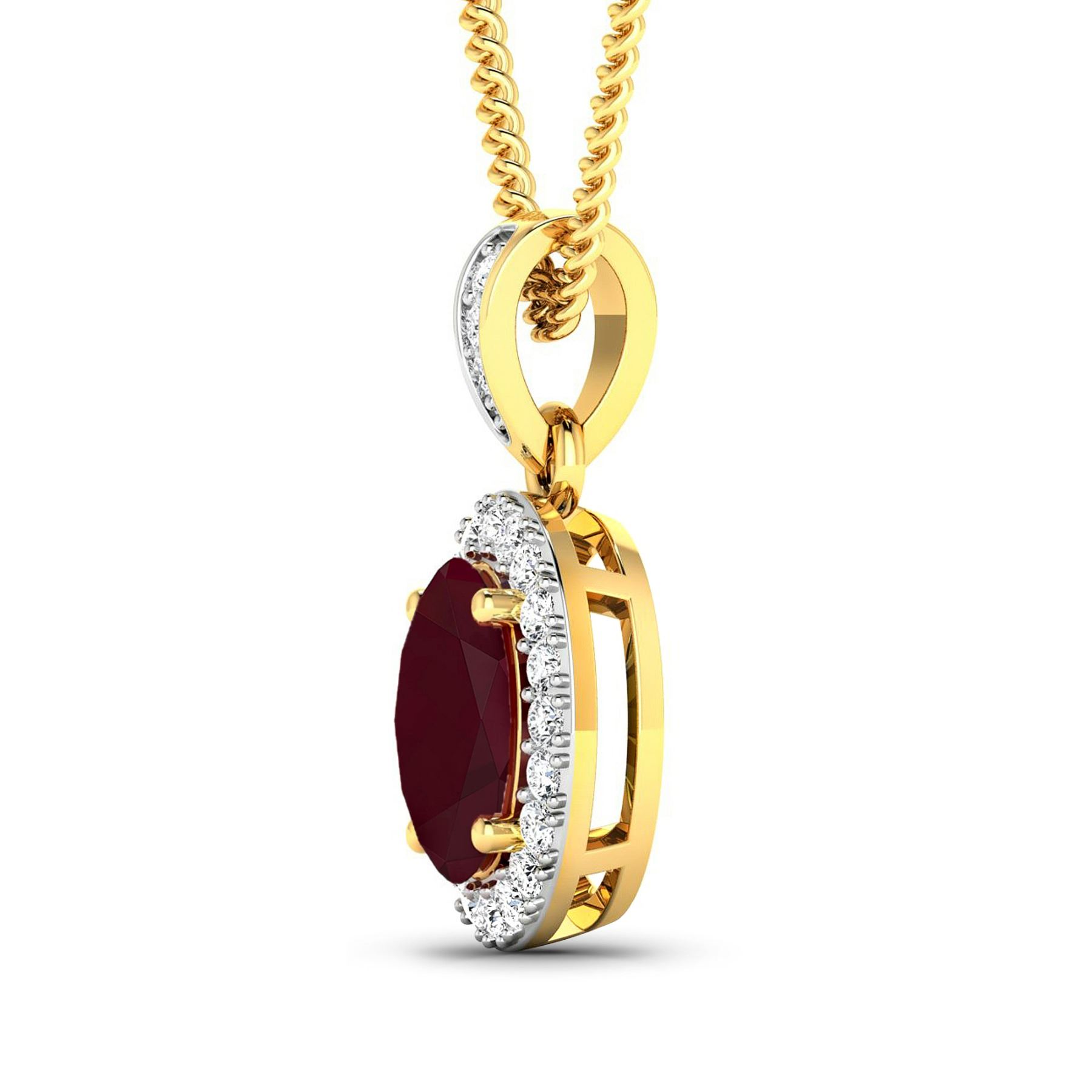 1 Ruby with a total weight of 1.50cts. Ruby (AA) Oval 8x6mm - 1Pc + White Diamond F/C Round 1.20mm - 22Pcs + White Diamond F/C Round 1.10mm - 1Pc ( I1-I2/I color ). Diamonds with a total weight of 0.18cts. Total weight of pendant with chain is 1.72 grams. 16 inch chain.