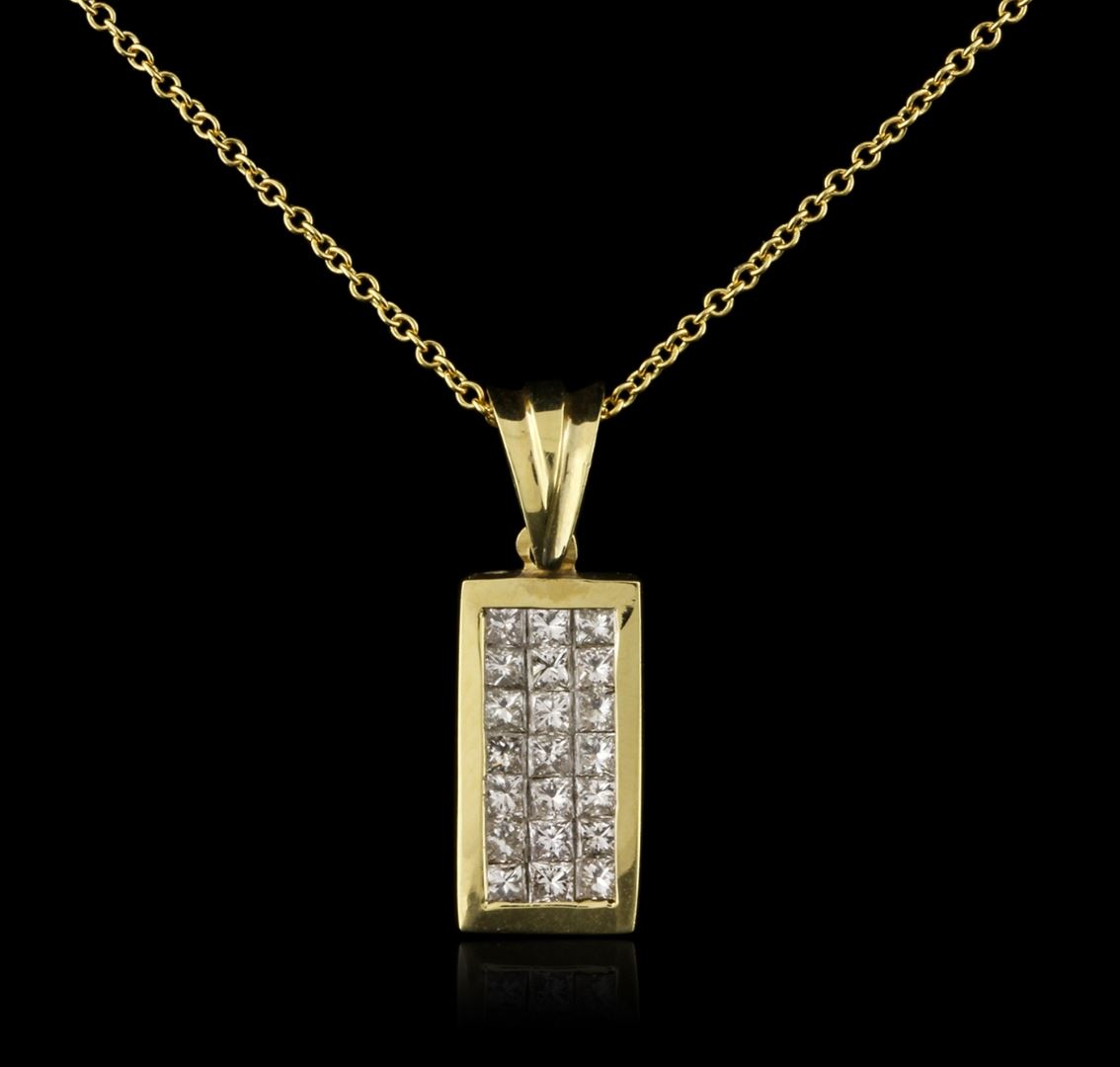 One pendant with chain featuring: 14KT yellow gold weighing 6.60 grams containing diamonds with a total weight of 1.50ct.