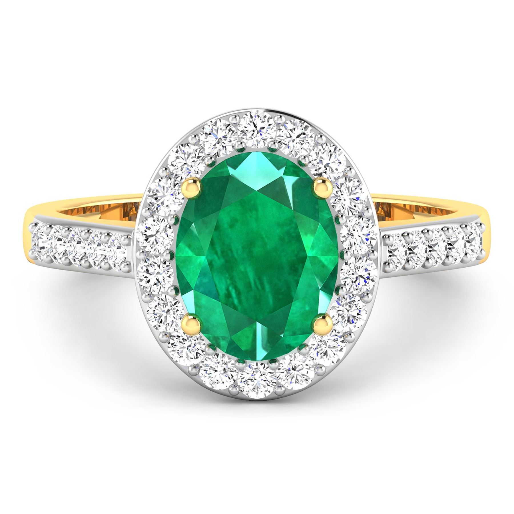 Zambian Emerald (AA) Oval 9x7mm - 1Pc + White Diamond F/C Round 1.50mm - 28Pcs ( White Pan Rhodium ) ( SI-2/HI ) Total weight of gemstone is 1.53cts. Total Diamond weight is 0.39cts. Total weight of this ring is 2.74 grams. Ring size 7.