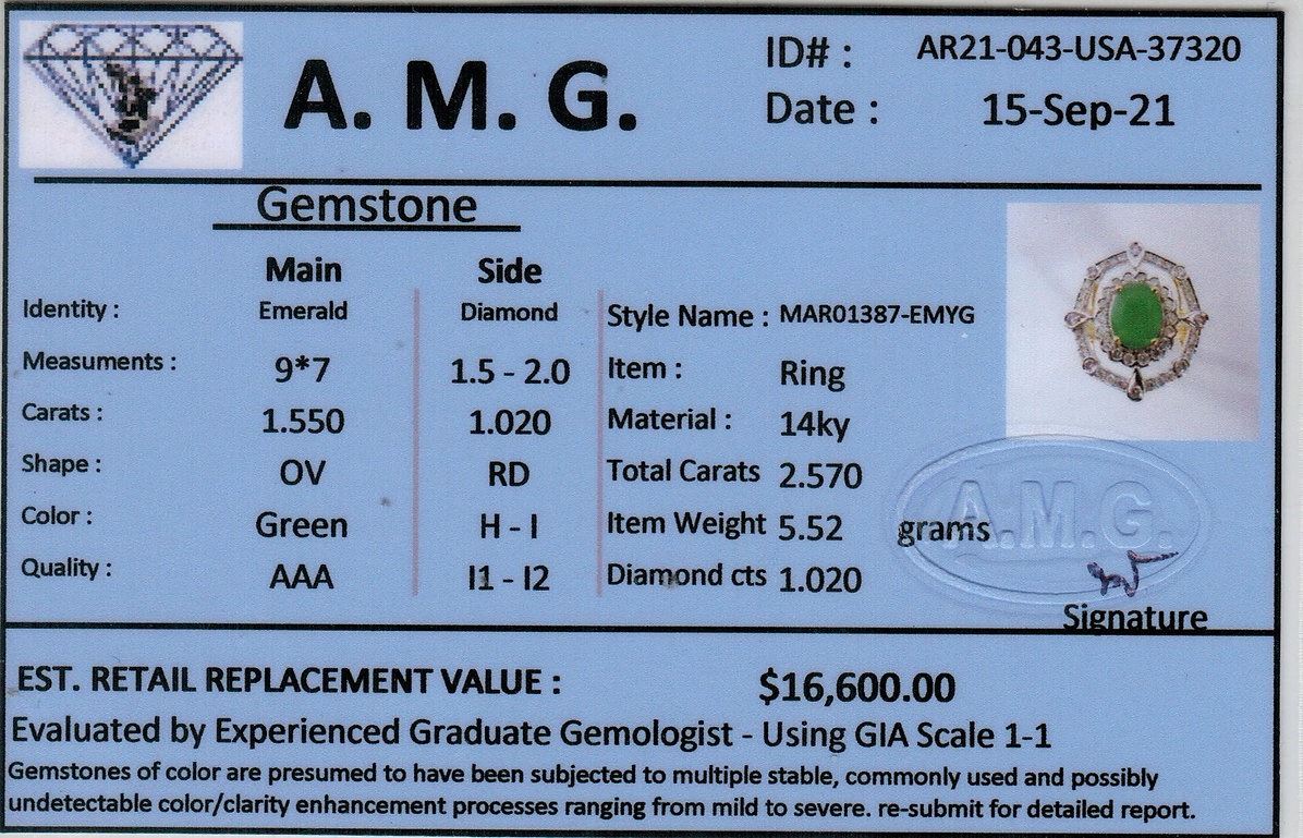 Not all Jewelry, watches or loose stones are appraised and the appraisals are provided for bidders only in certain instances at the discretion of 1 GREAT DEAL AUCTIONS. Our appraisals are conducted by independent third-party appraisal firms. Such firms may be certified GIA Gemologists or have education in the industry or alternative certifications. Appraisals should be used for verification of gemstone and/or metal weight, size, and grade only, not actual value for resale or insurance purposes. Appraisal value should be not considered for actual value, as price varies greatly from retail locations and other merchants in different geographic locations. All Items auctioned by 1 GREAT DEAL AUCTIONS should not be purchased with a view or expectation toward resale for appraisal price given, or to make a profit. The ultimate value for which an item can be resold may vary drastically from the appraisals listed by 1 GREAT DEAL AUCTIONS.