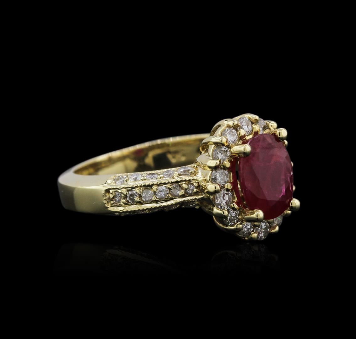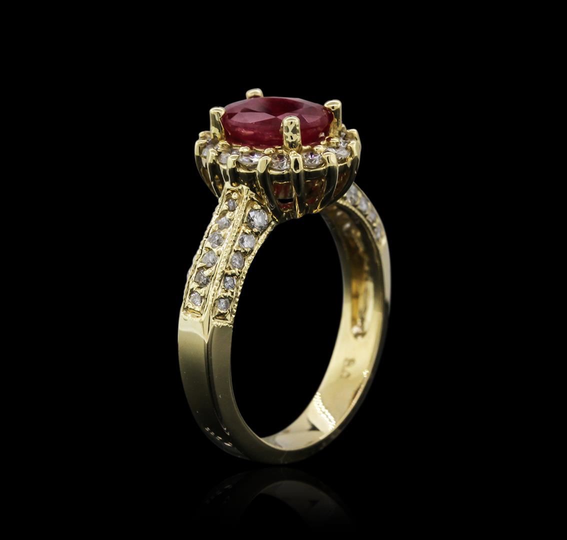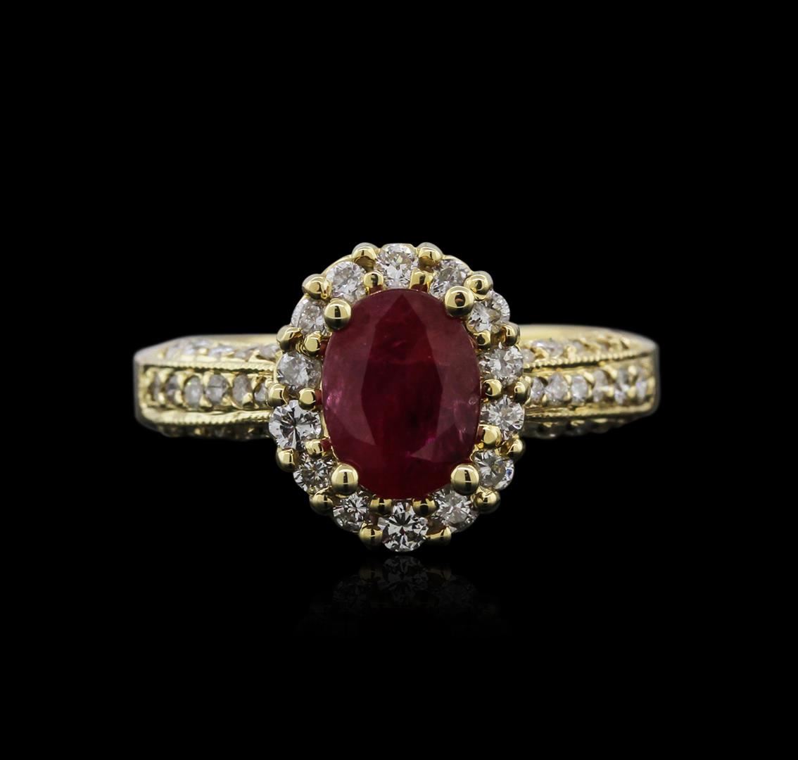 One ring featuring: 14KT yellow gold weighing 5.95 grams containing one ruby center stone with a total weight of 1.56ct and 46 diamonds with a total weight of 0.68ct.