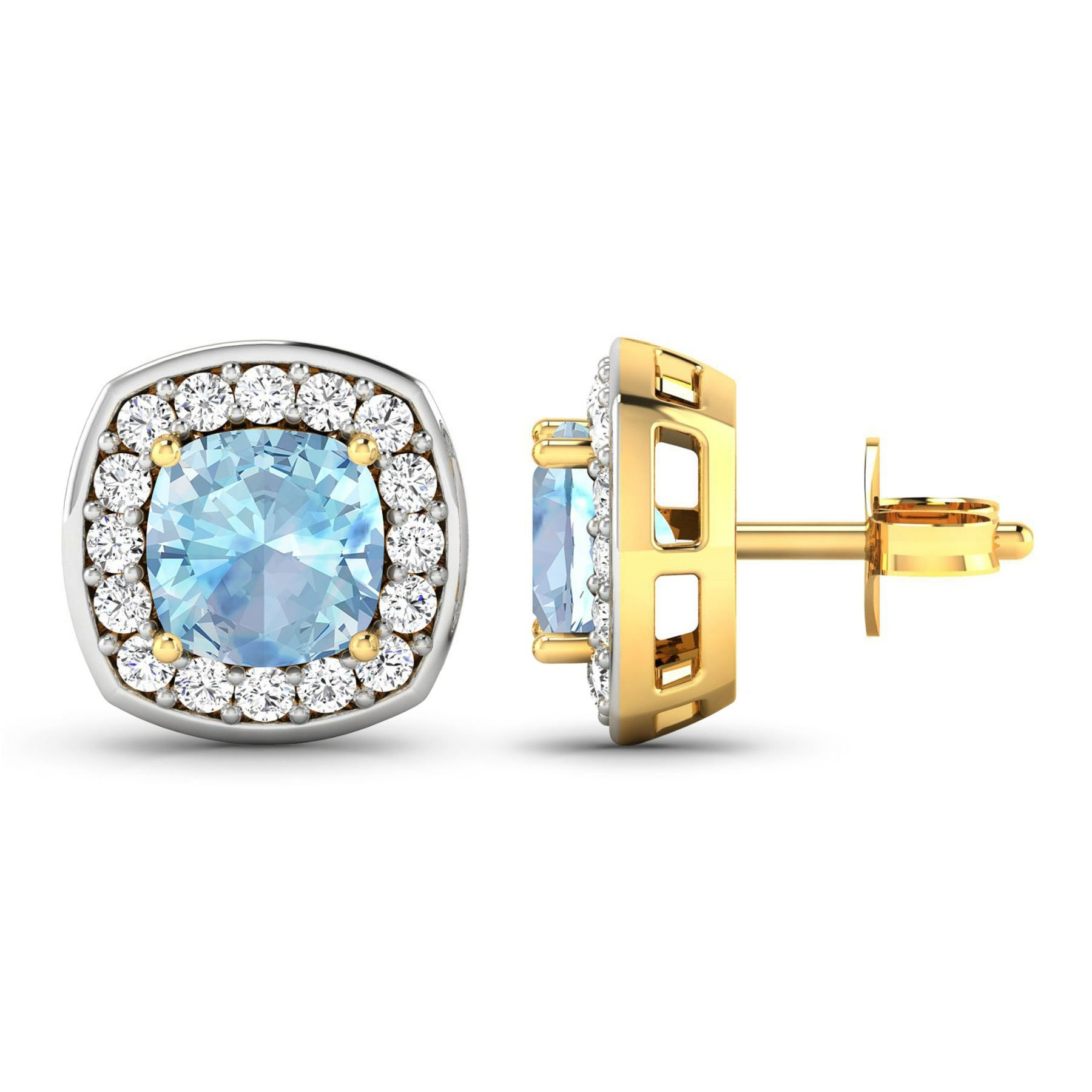 Aquamarine Cushion 6.00mm - 2Pcs + White Diamond F/C Round 1.50mm - 32Pcs ( Diamond Quality : SI-2/HI ) ( Push Post ) Total weight of gemstones is 1.5cts. Total Diamond weight is 0.44cts. Total weight of these earrings are 2.96 grams.