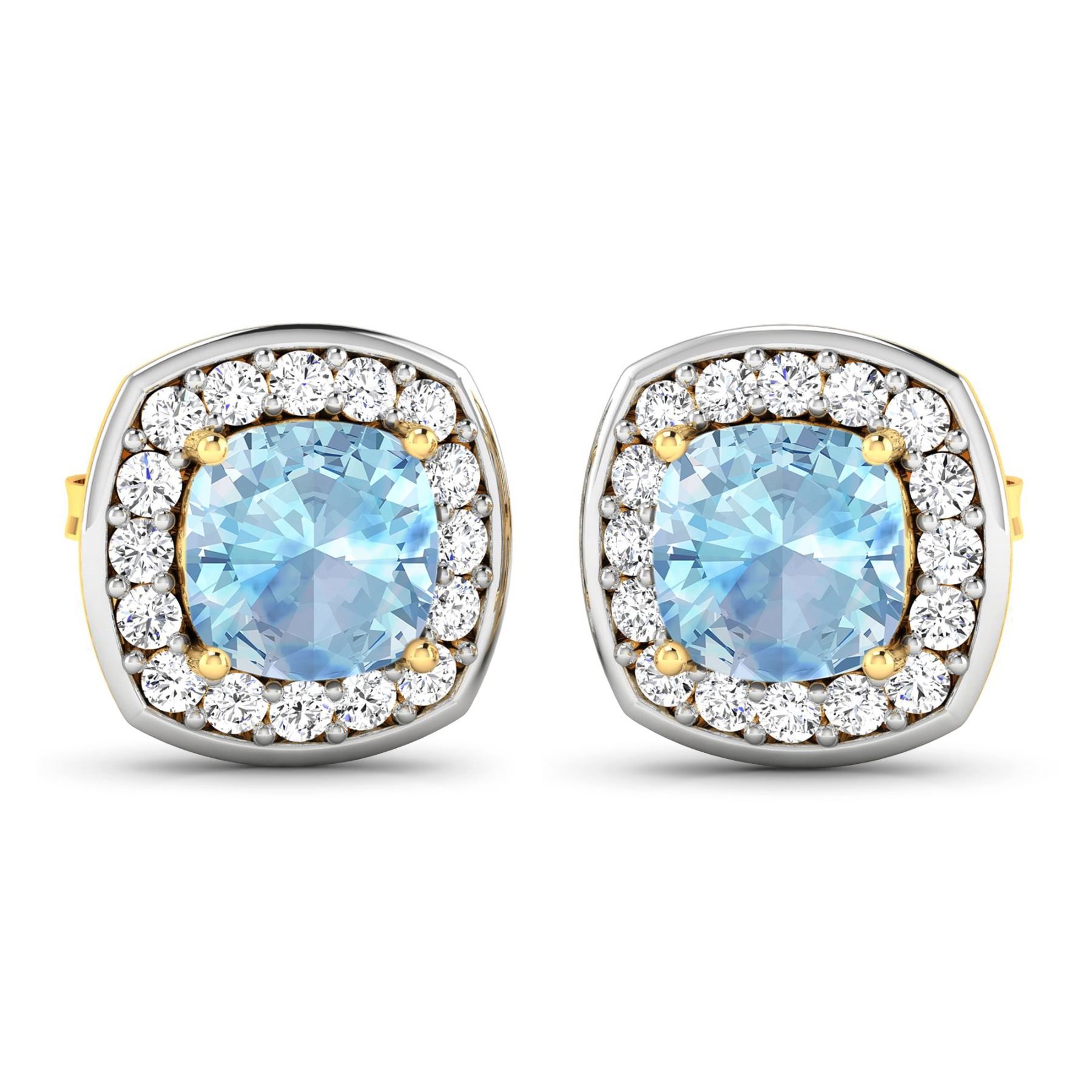 Aquamarine Cushion 6.00mm - 2Pcs + White Diamond F/C Round 1.50mm - 32Pcs ( Diamond Quality : SI-2/HI ) ( Push Post ) Total weight of gemstones is 1.5cts. Total Diamond weight is 0.44cts. Total weight of these earrings are 2.96 grams.