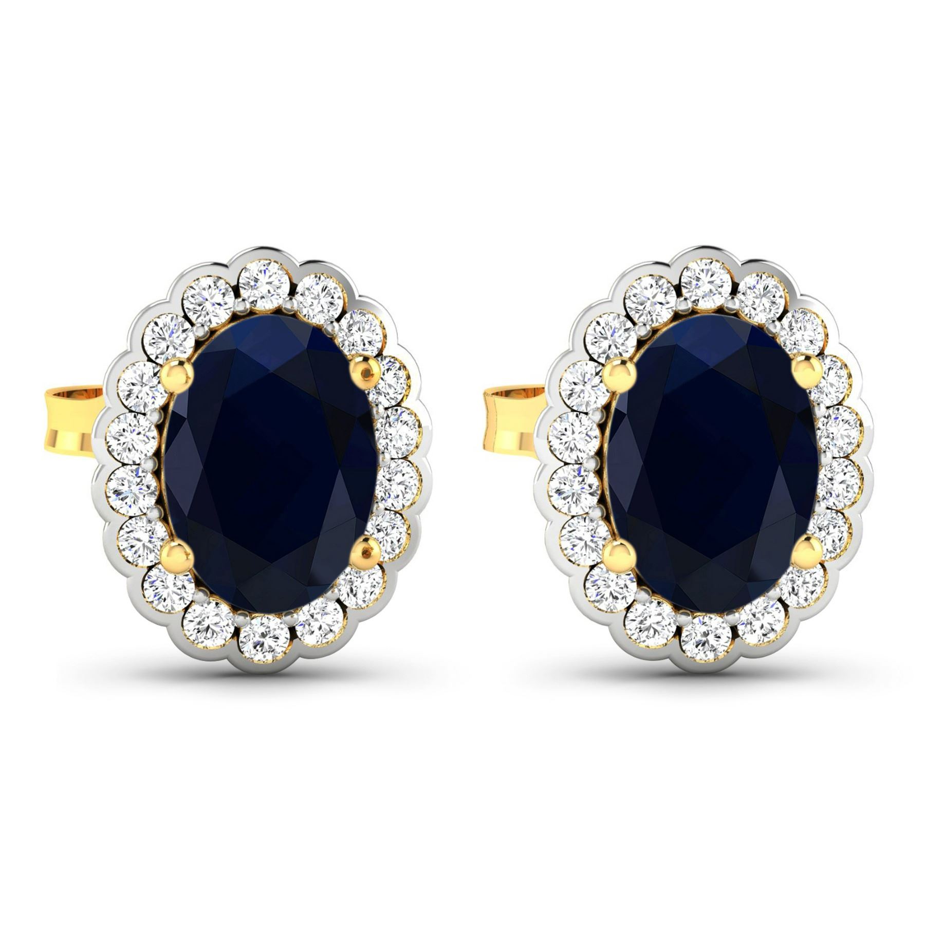 Blue Sapphire (AA) Oval 7x5mm - 2Pcs + White Diamond F/C Round 1.20mm - 36Pcs ( White Pan Rhodium ) (I1-I2/I color) ( Push Post ) Total weight of gemstones is 1.5cts. Total Diamond weight is 0.28cts. Total weight of these earrings are 2.57 grams.