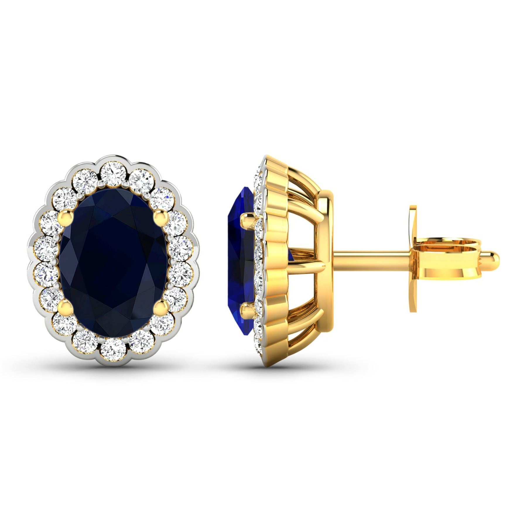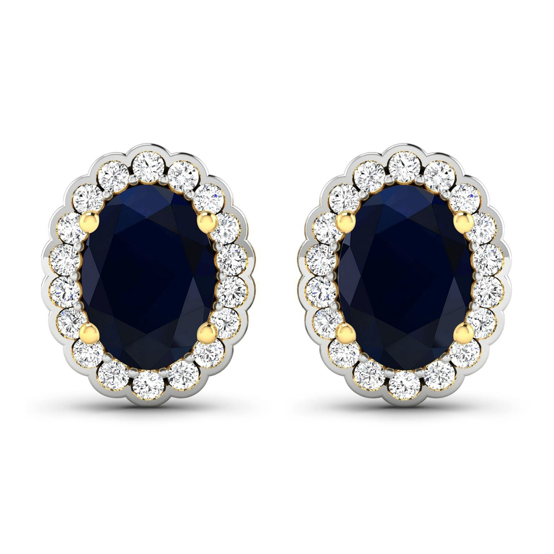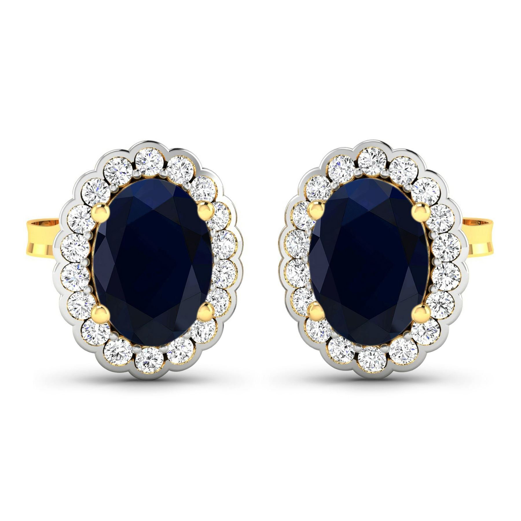 Blue Sapphire (AA) Oval 7x5mm - 2Pcs + White Diamond F/C Round 1.20mm - 36Pcs ( White Pan Rhodium ) (I1-I2/I color) ( Push Post ) Total weight of gemstones is 1.5cts. Total Diamond weight is 0.28cts. Total weight of these earrings are 2.57 grams.