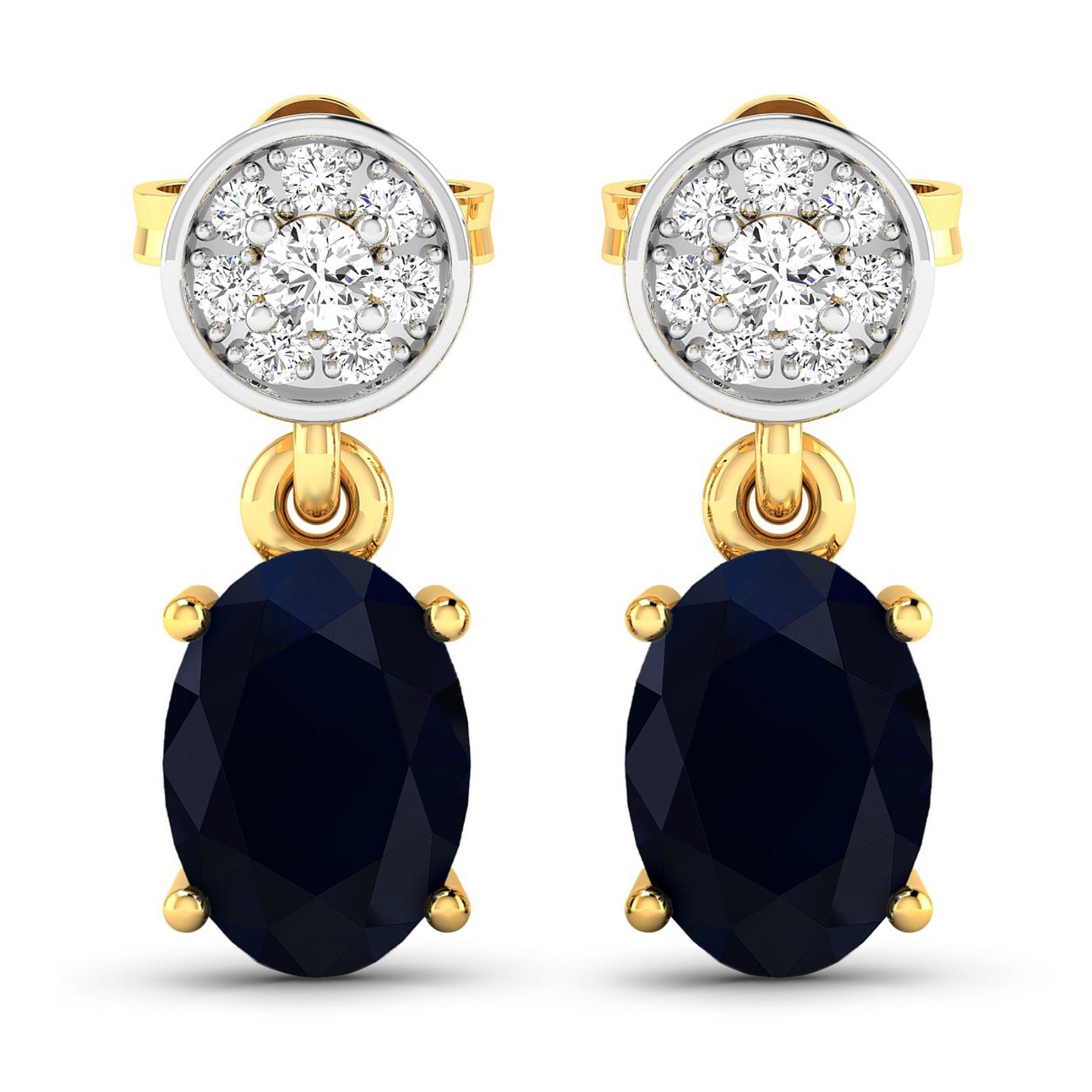 14KT Yellow Gold 1.5ctw Blue Sapphire and Diamond Earrings