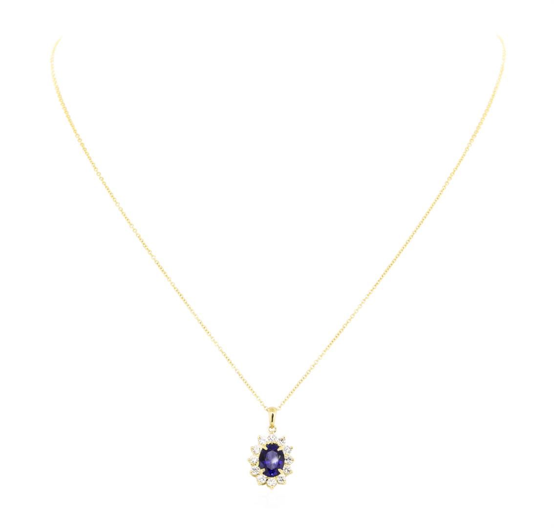 14KT Yellow Gold 1.60 ctw Sapphire and Diamond Pendant with Chain