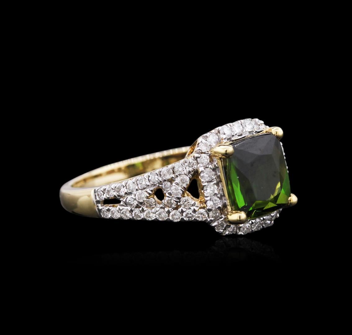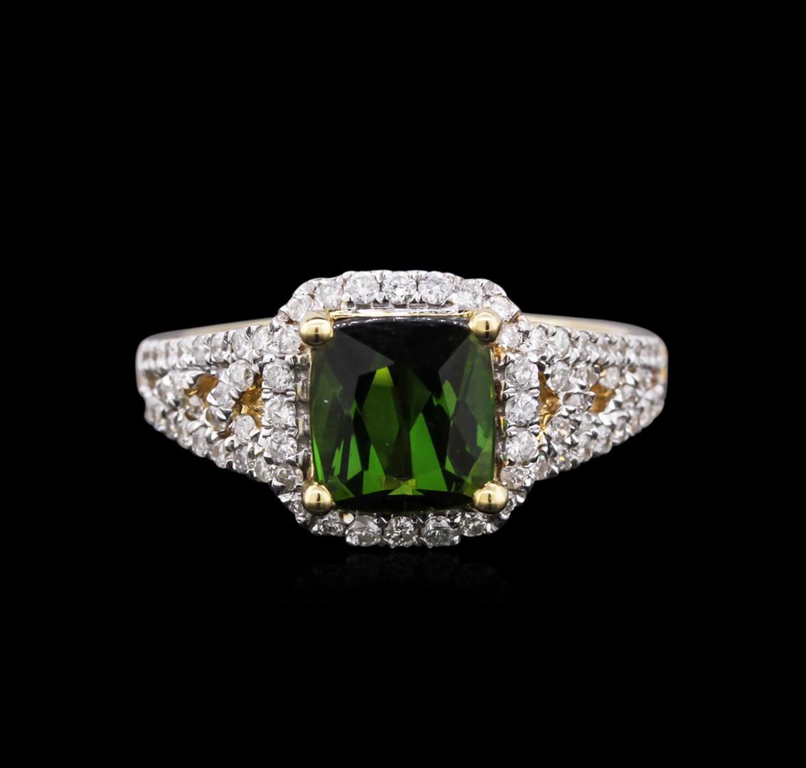 One ring featuring: 14KT yellow gold weighing 2.92 grams containing one green tourmaline center stone with a total weight of 1.60ct and 76 round diamonds with a total weight of 0.51ct.