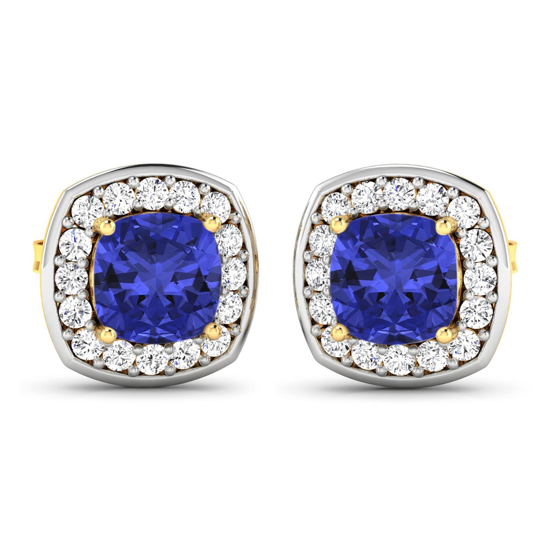 Tanzanite (AA+) Cushion 6.00mm - 2Pcs + White Diamond F/C Round 1.50mm - 32Pcs ( Diamond Quality : SI-2/HI ) ( Push Post ) Total weight of gemstones is 1.64cts. Total Diamond weight is 0.44cts. Total weight of these earrings are 2.99 grams.