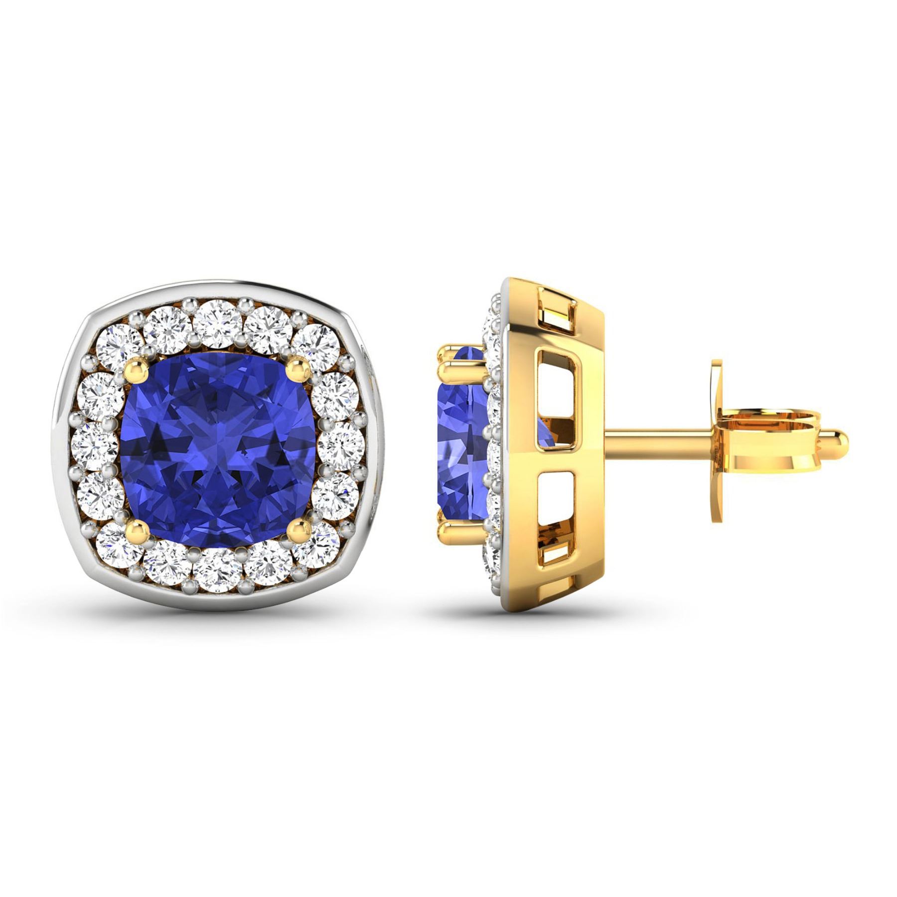 Tanzanite (AA+) Cushion 6.00mm - 2Pcs + White Diamond F/C Round 1.50mm - 32Pcs ( Diamond Quality : SI-2/HI ) ( Push Post ) Total weight of gemstones is 1.64cts. Total Diamond weight is 0.44cts. Total weight of these earrings are 2.99 grams.