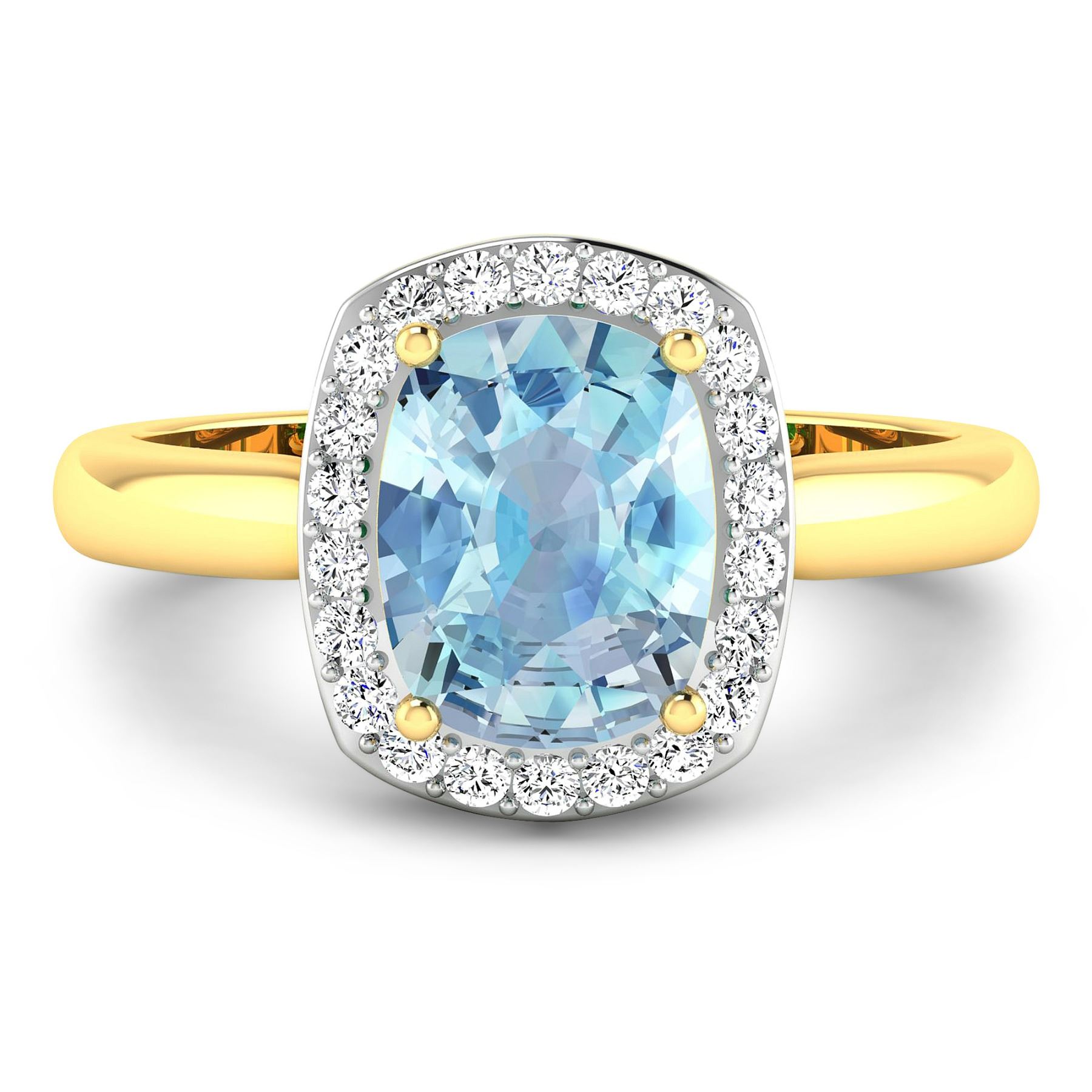 Aquamarine (AA+) Cushion 9x7mm - 1Pc + White Diamond F/C Round 1.30mm - 22Pcs ( White Pan Rhodium ) ( SI2/HI color ) Total weight of gemstone is 1.65cts. Total Diamond weight is 0.22cts. Total weight of this ring is 2.95 grams. Ring size 7.