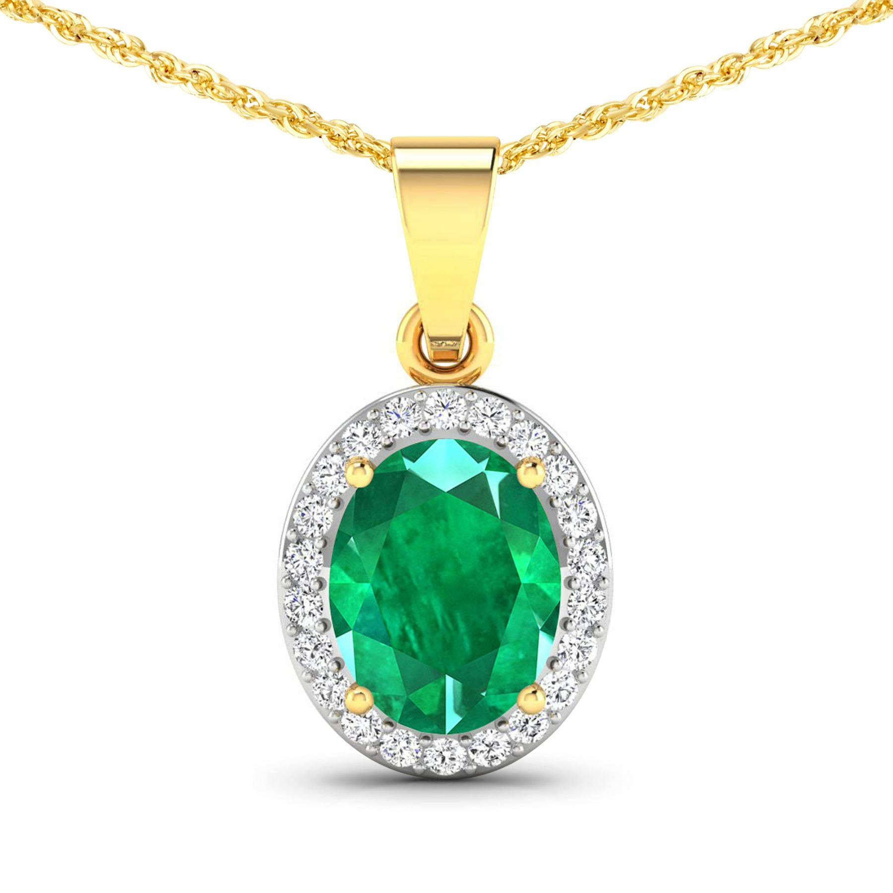 14KT Yellow Gold 1.65ctw Zambian Emerald and Diamond Pendant
