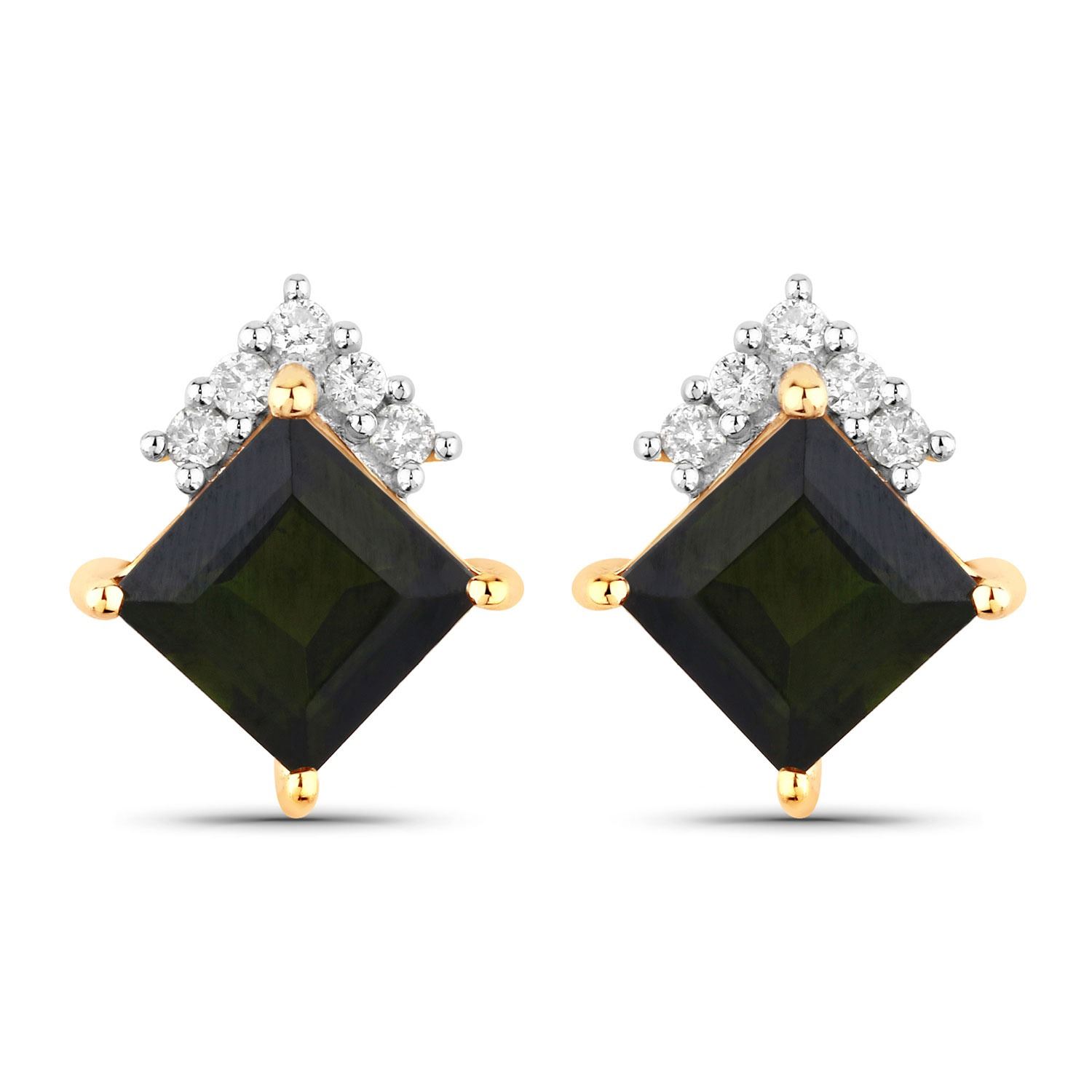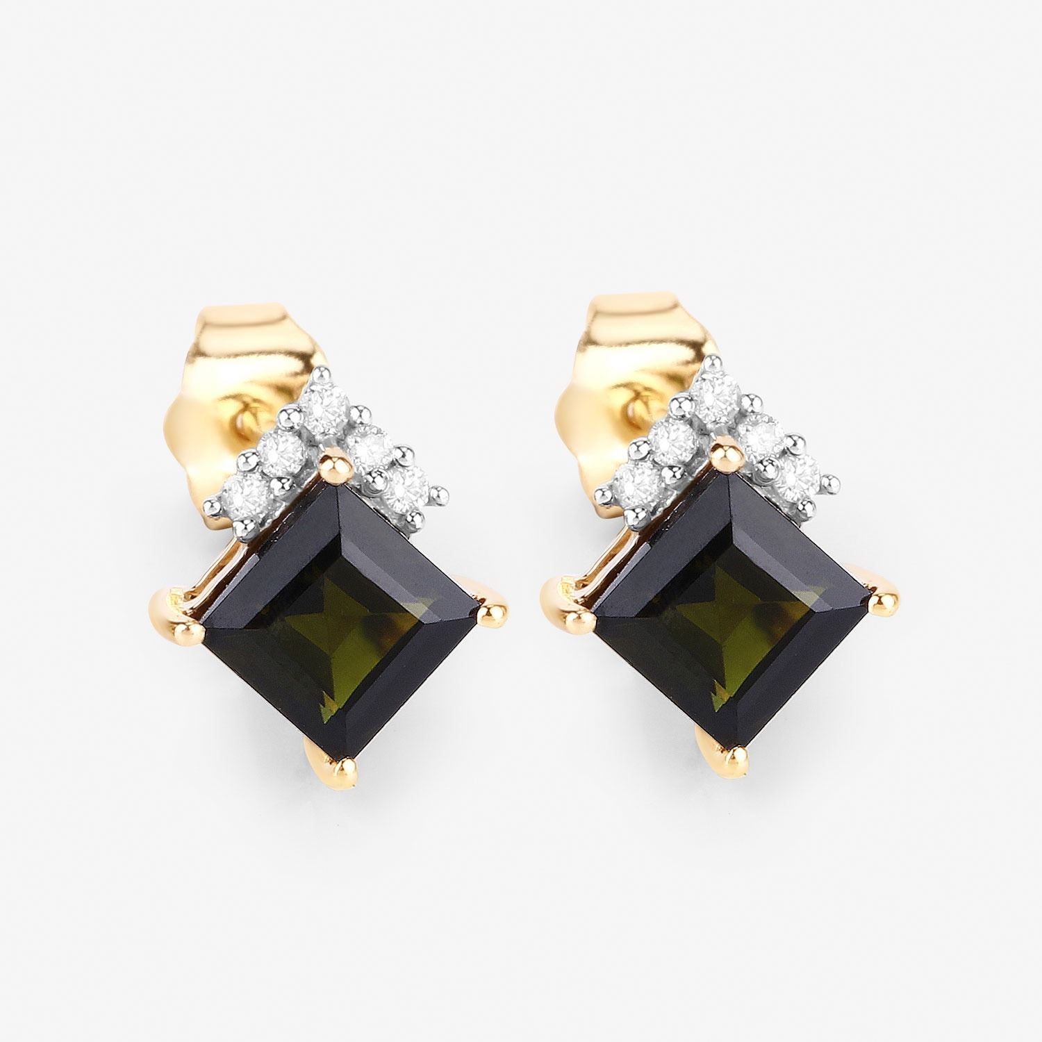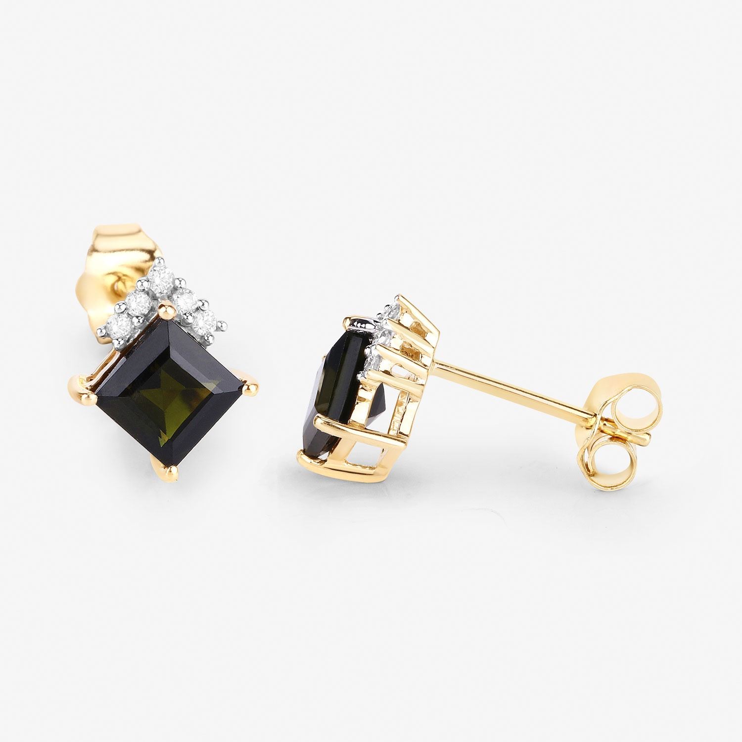 14KT Yellow Gold 1.66ctw Green Tourmaline and White Diamond Earrings