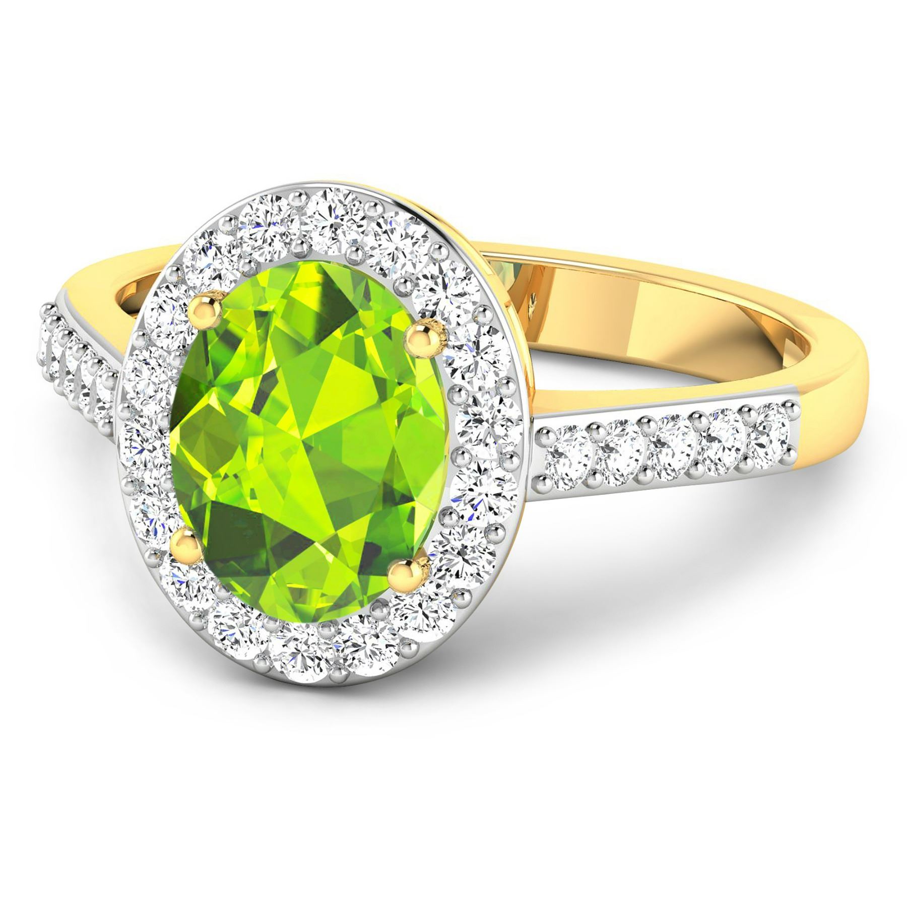 Peridot Oval 9x7mm - 1Pc + White Diamond F/C Round 1.50mm - 28Pcs ( White Pan Rhodium ) ( SI-2/HI ) Total weight of gemstone is 1.6cts. Total Diamond weight is 0.39cts. Total weight of this ring is 2.76 grams. Ring size 7.