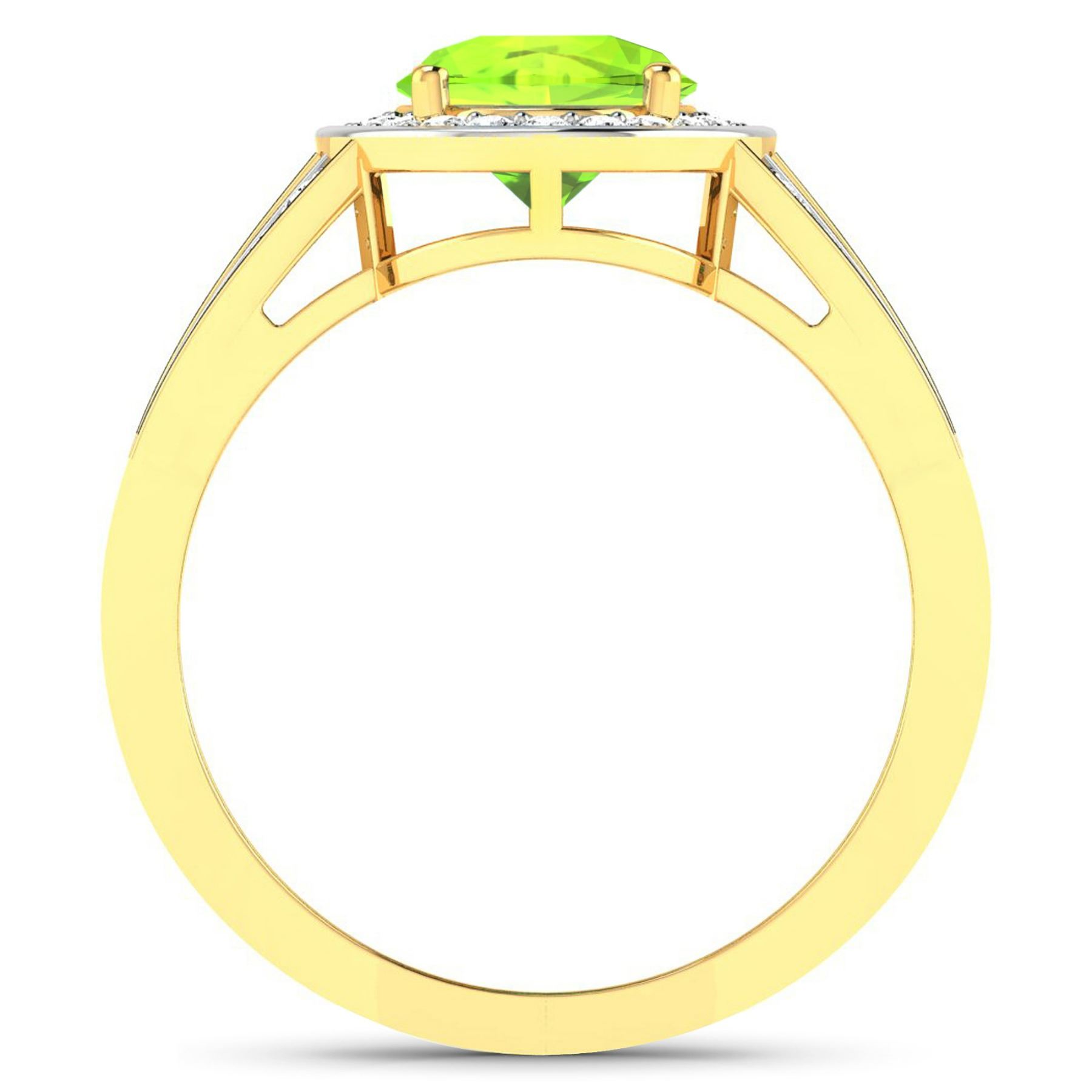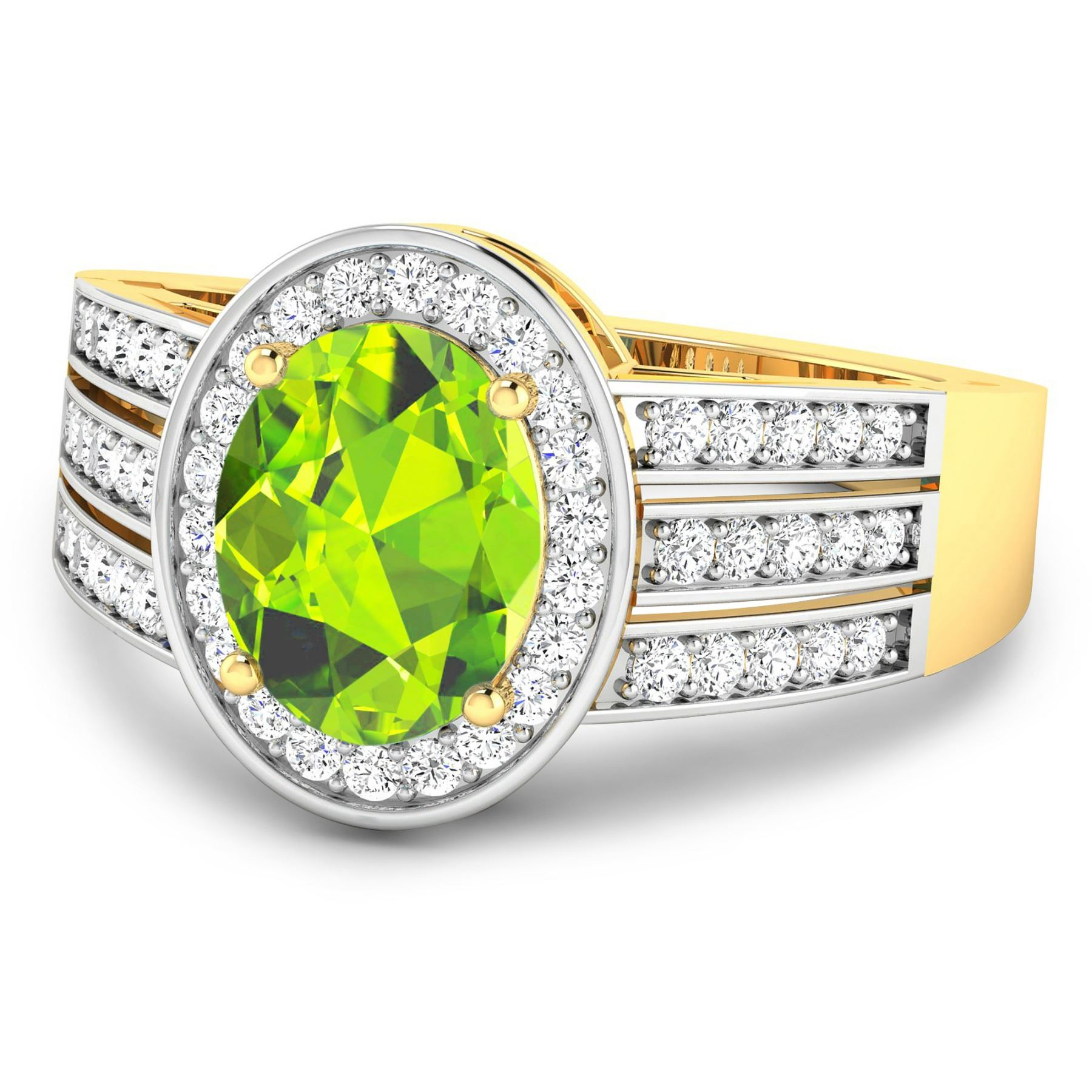 Peridot Oval 9x7mm - 1Pc + White Diamond F/C Round 1.30mm - 32Pcs + White Diamond F/C Round 1.20mm - 6Pcs + White Diamond F/C Round 1.10mm - 6Pcs + White Diamond F/C Round 1.00mm - 8Pcs ( White Pan Rhodium ) ( SI-2/HI ) Total weight of gemstone is 1.6cts. Total Diamond weight is 0.44cts. Total weight of this ring is 3.63 grams. Ring size 7.