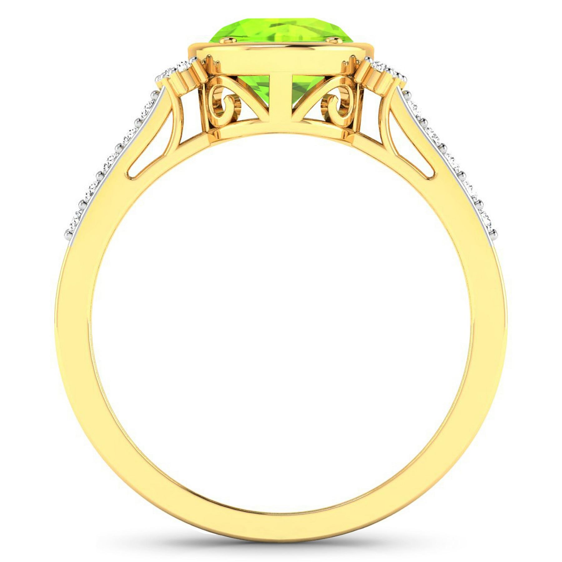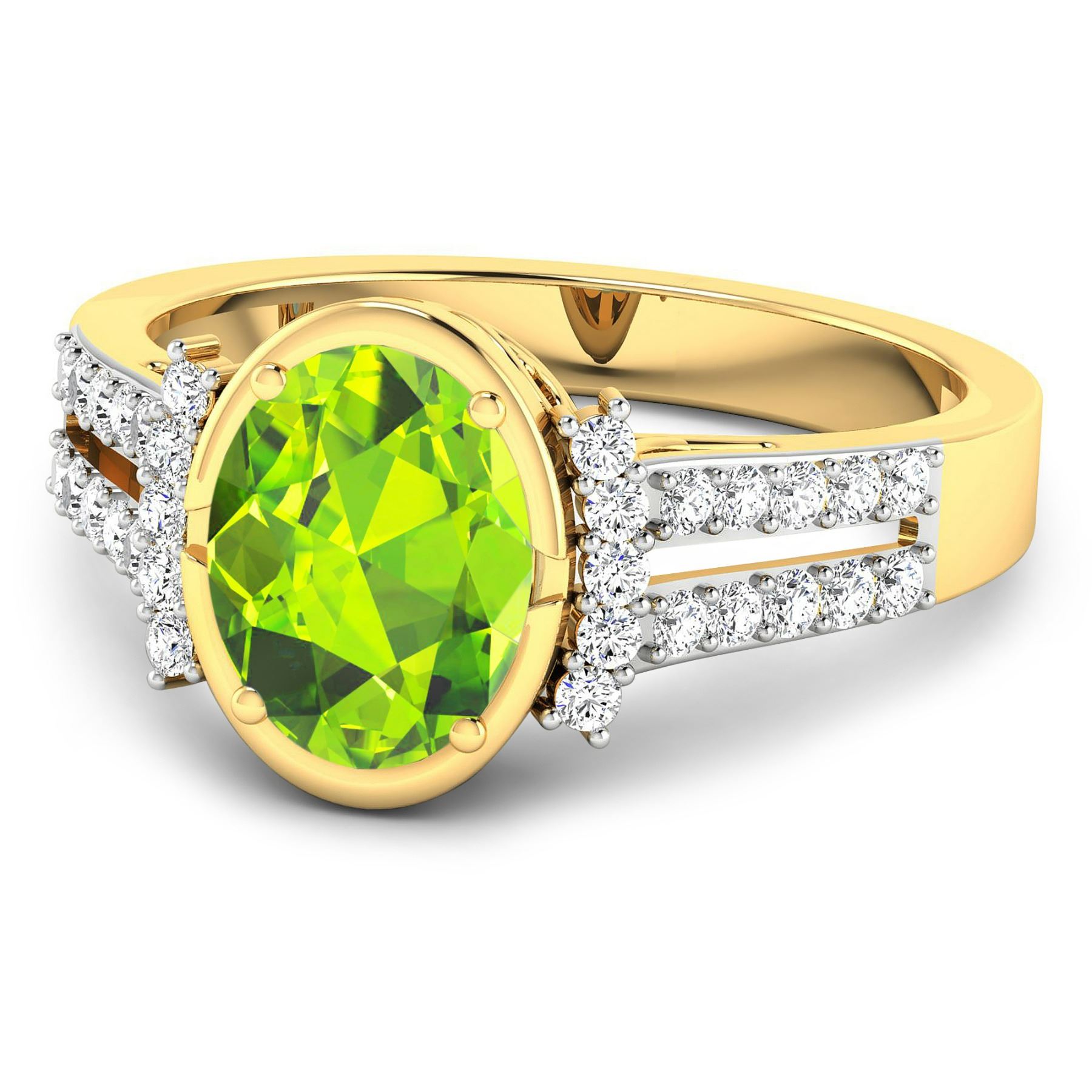Peridot Oval 9x7mm - 1Pc + White Diamond F/C Round 1.30mm - 30Pcs ( White Pan Rhodium ) ( SI-2/HI ) Total weight of gemstone is 1.6cts. Total Diamond weight is 0.3cts. Total weight of this ring is 3.31 grams. Ring size 7.