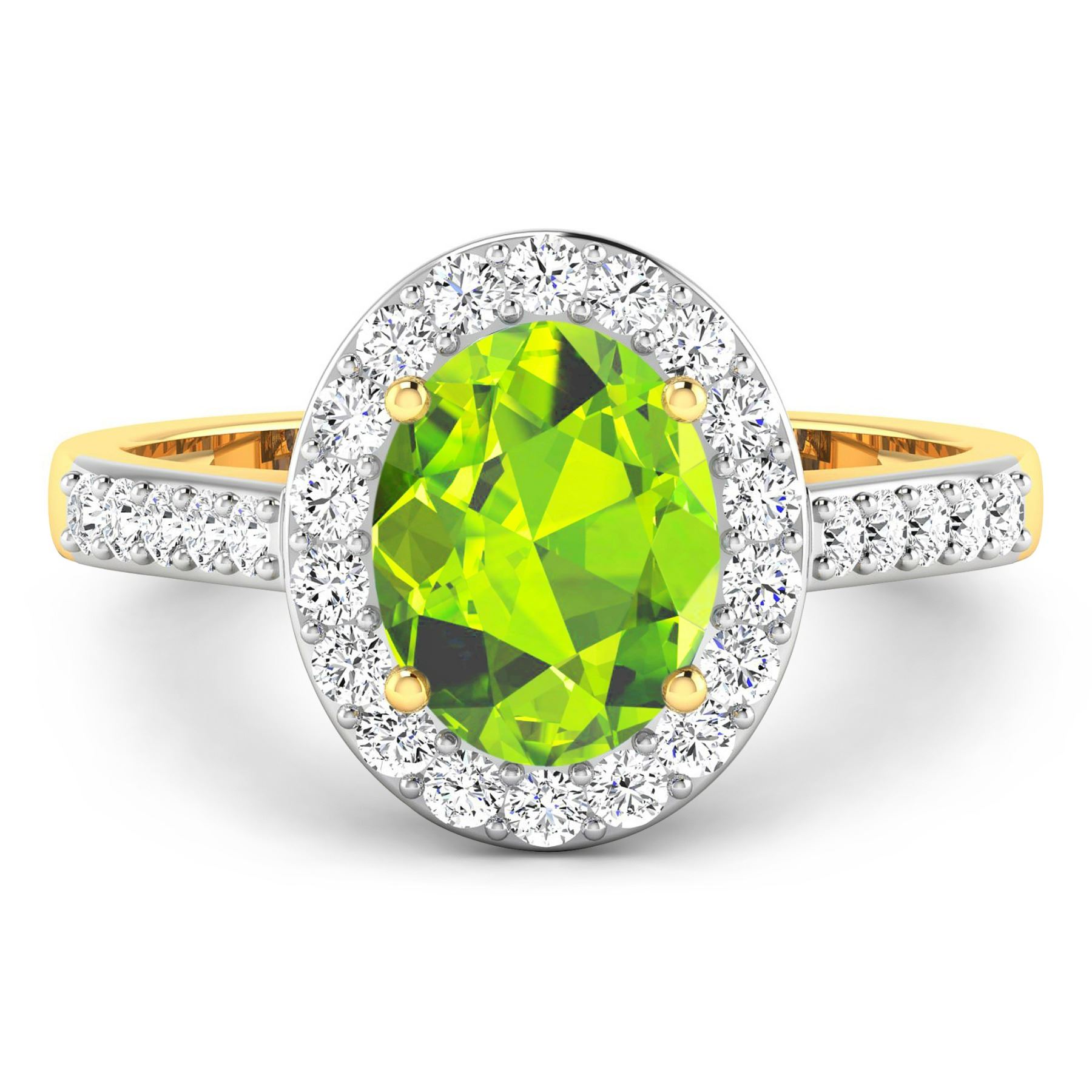 Peridot Oval 9x7mm - 1Pc + White Diamond F/C Round 1.50mm - 28Pcs ( White Pan Rhodium ) ( SI-2/HI ) Total weight of gemstone is 1.6cts. Total Diamond weight is 0.39cts. Total weight of this ring is 2.76 grams. Ring size 7.