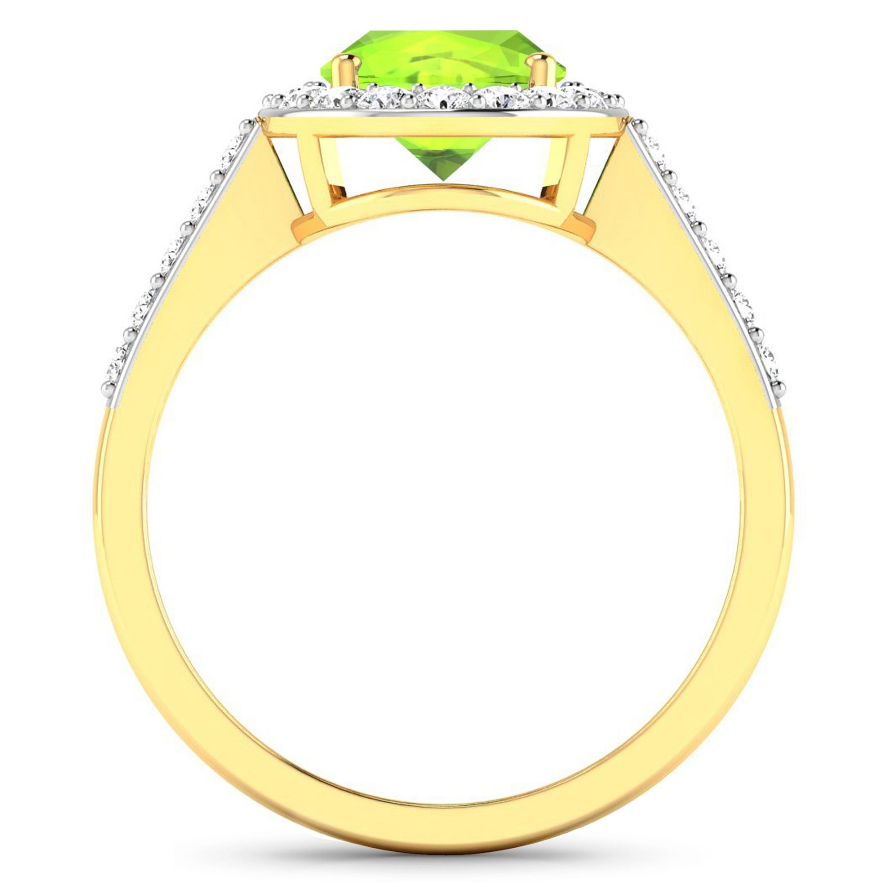 Peridot Oval 9x7mm - 1Pc + White Diamond F/C Round 1.50mm - 28Pcs ( White Pan Rhodium ) ( SI-2/HI ) Total weight of gemstone is 1.6cts. Total Diamond weight is 0.39cts. Total weight of this ring is 2.76 grams. Ring size 7.