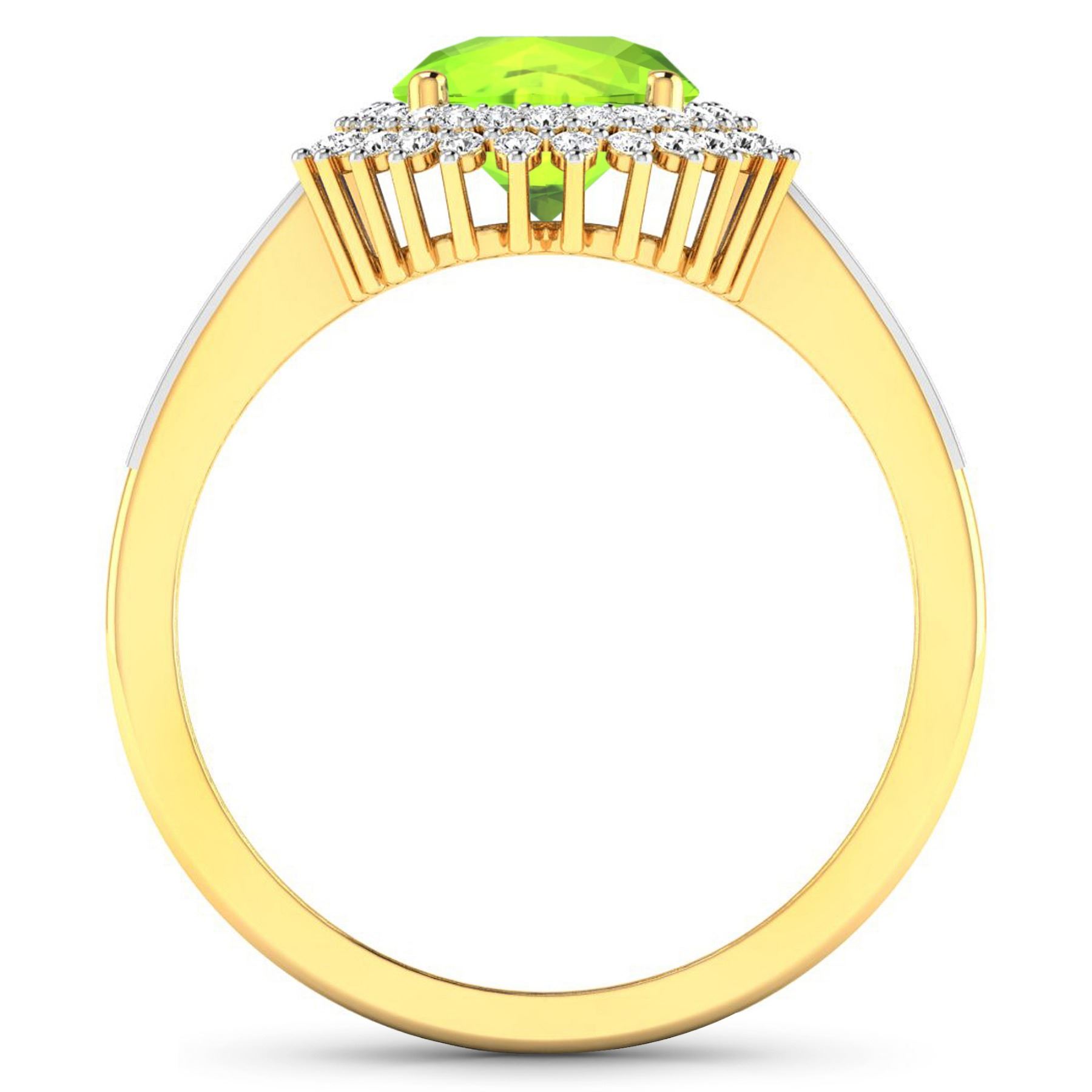 Peridot Oval 9x7mm - 1Pc + White Diamond Baguette 2.00x1.50mm - 10Pcs + White Diamond F/C Round 1.00mm - 52Pcs ( White Pan Rhodium ) ( SI-2/HI ) Total weight of gemstone is 1.6cts. Total Diamond weight is 0.52cts. Total weight of this ring is 3.51 grams. Ring size 7.