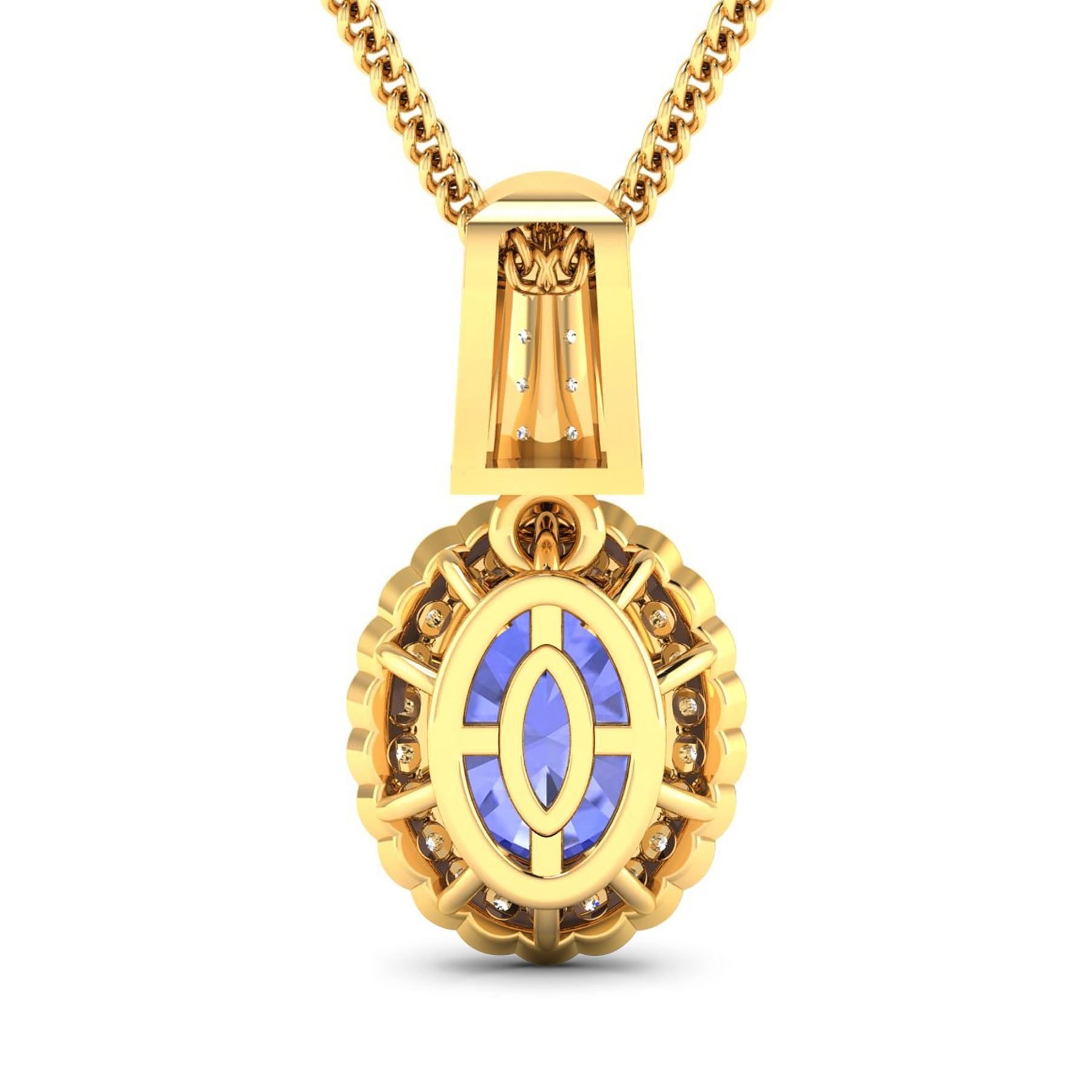 Tanzanite (AA+) Oval 9x7mm - 1Pc + White Diamond F/C Round 1.20mm - 22Pcs + White Diamond F/C Round 1.00mm - 10Pcs ( I1-I2/I color ) Total weight of gemstone is 1.6cts. Total Diamond weight is 0.22cts. Total weight of this pendant is 2.3 grams.