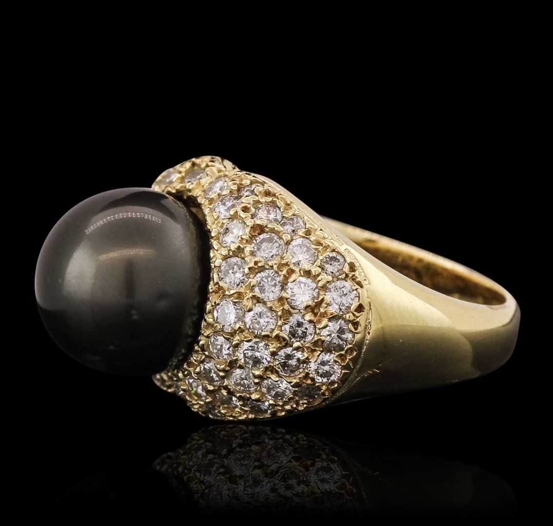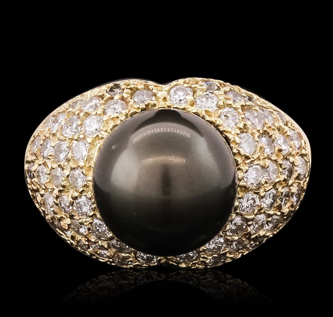 One ring featuring: 14KT yellow gold weighing 10.92 grams containing one black pearl measuring 10.75mm and round cut diamonds with a total weight of 1.70cts.