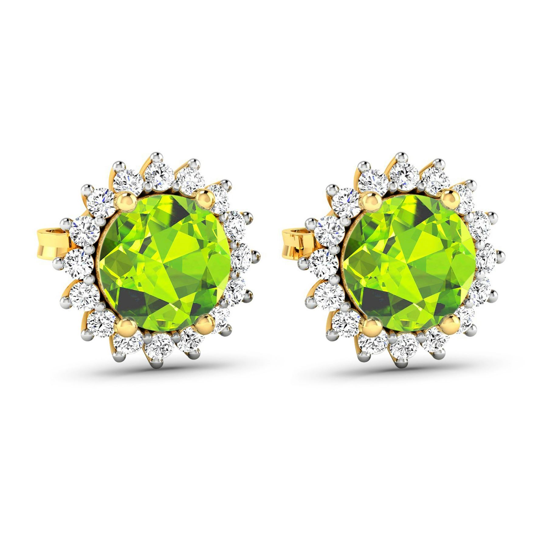 Peridot Round 6.00mm - 2Pcs + White Diamond F/C Round 1.30mm - 32Pcs ( Push-Post ) ( White Pan Rhodium ) ( I1-I2/I color ) Total weight of gemstones is 1.72cts. Total Diamond weight is 0.32cts. Total weight of these earrings are 2.22 grams.