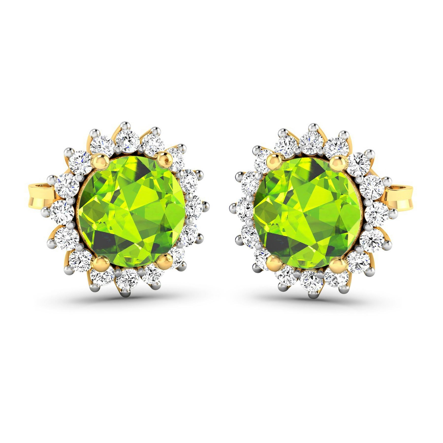 Peridot Round 6.00mm - 2Pcs + White Diamond F/C Round 1.30mm - 32Pcs ( Push-Post ) ( White Pan Rhodium ) ( I1-I2/I color ) Total weight of gemstones is 1.72cts. Total Diamond weight is 0.32cts. Total weight of these earrings are 2.22 grams.