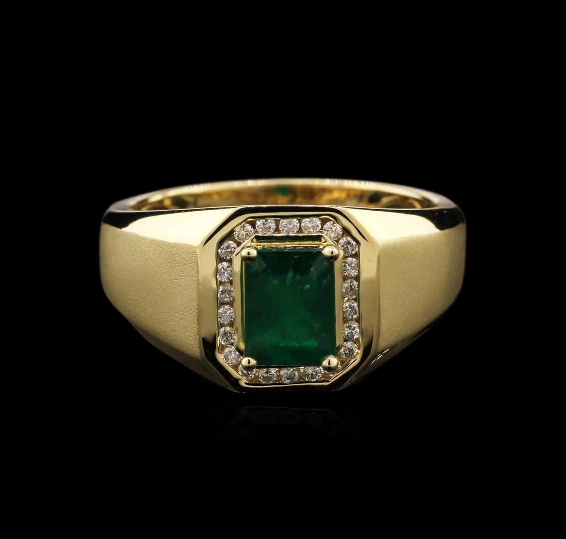 One ring featuring: 14KT yellow gold weighing 7.76 grams containing one emerald center stone with a total weight of 1.75ct and 22 round diamonds with a total weight of 0.21ct.