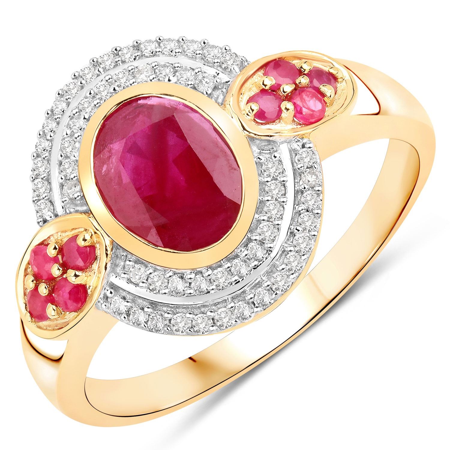 14KT Yellow Gold 1.75ctw Johnson Ruby, Ruby and White Diamond Ring