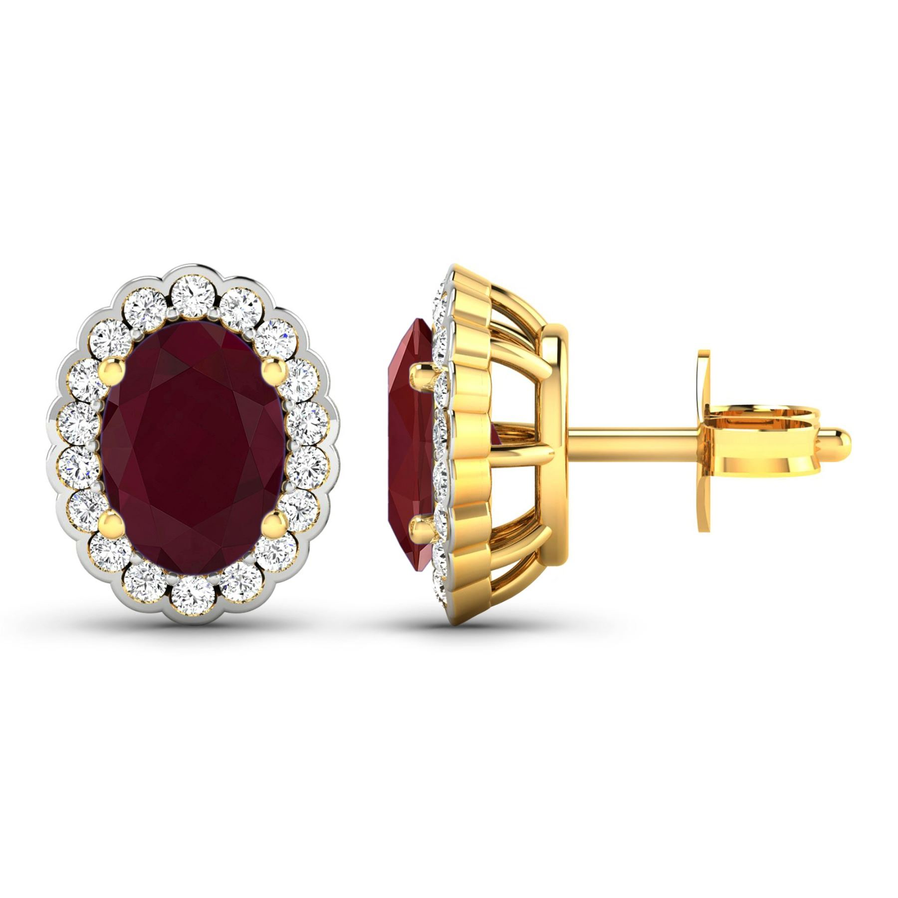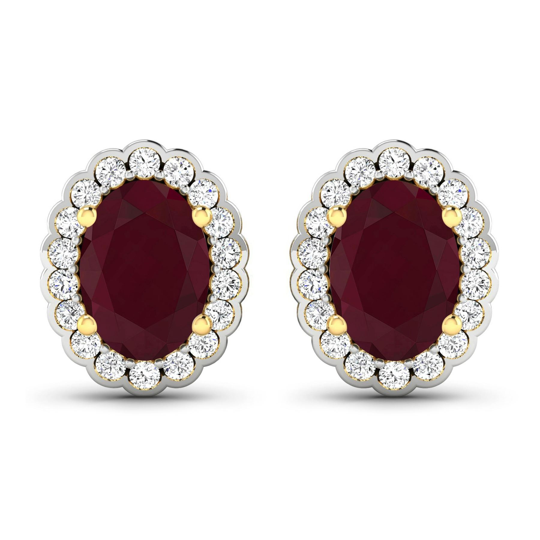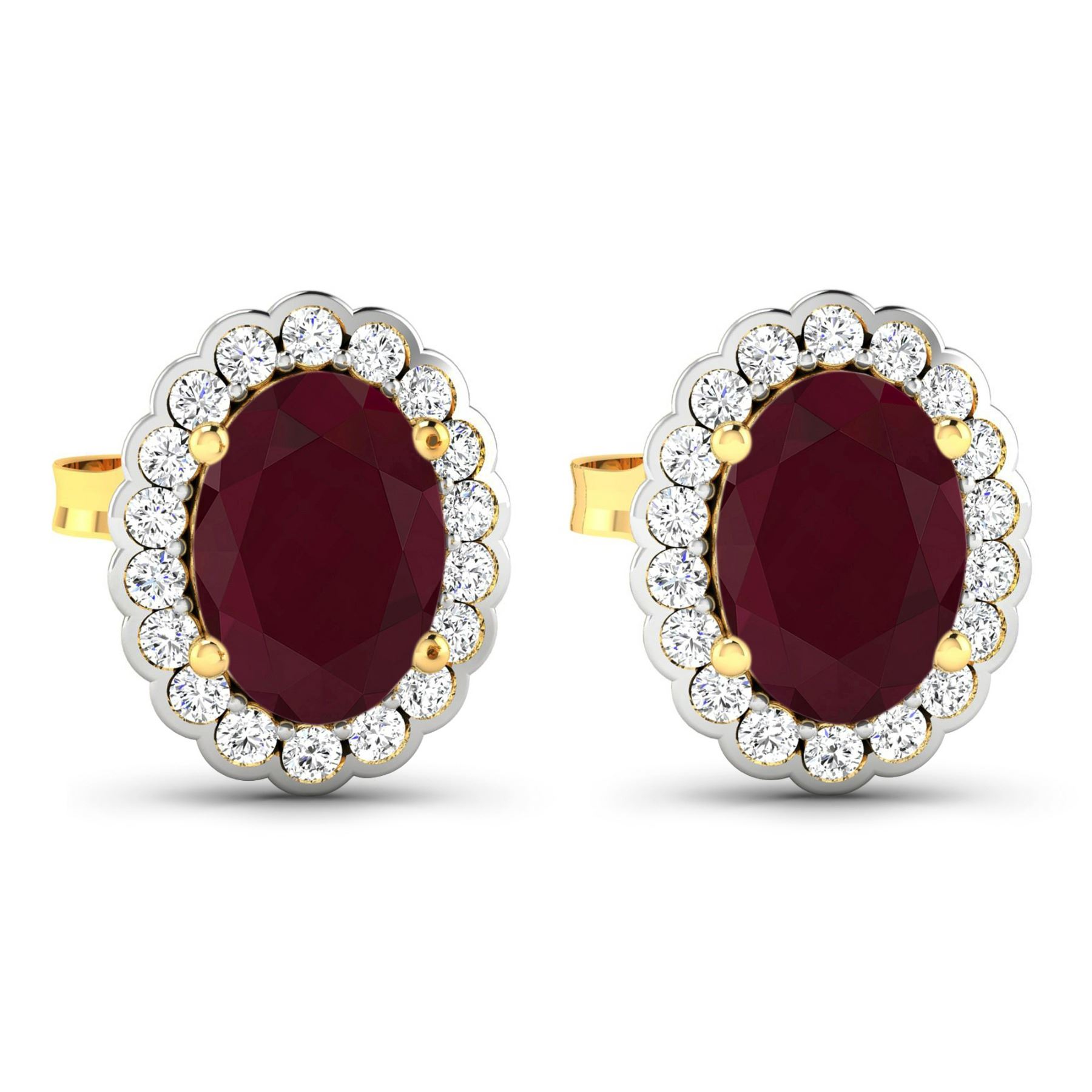 Ruby (AA) Oval 7x5mm - 2Pcs + White Diamond F/C Round 1.20mm - 36Pcs ( White Pan Rhodium ) (I1-I2/I color) ( Push Post ) Total weight of gemstones is 1.7cts. Total Diamond weight is 0.28cts. Total weight of these earrings are 2.61 grams.