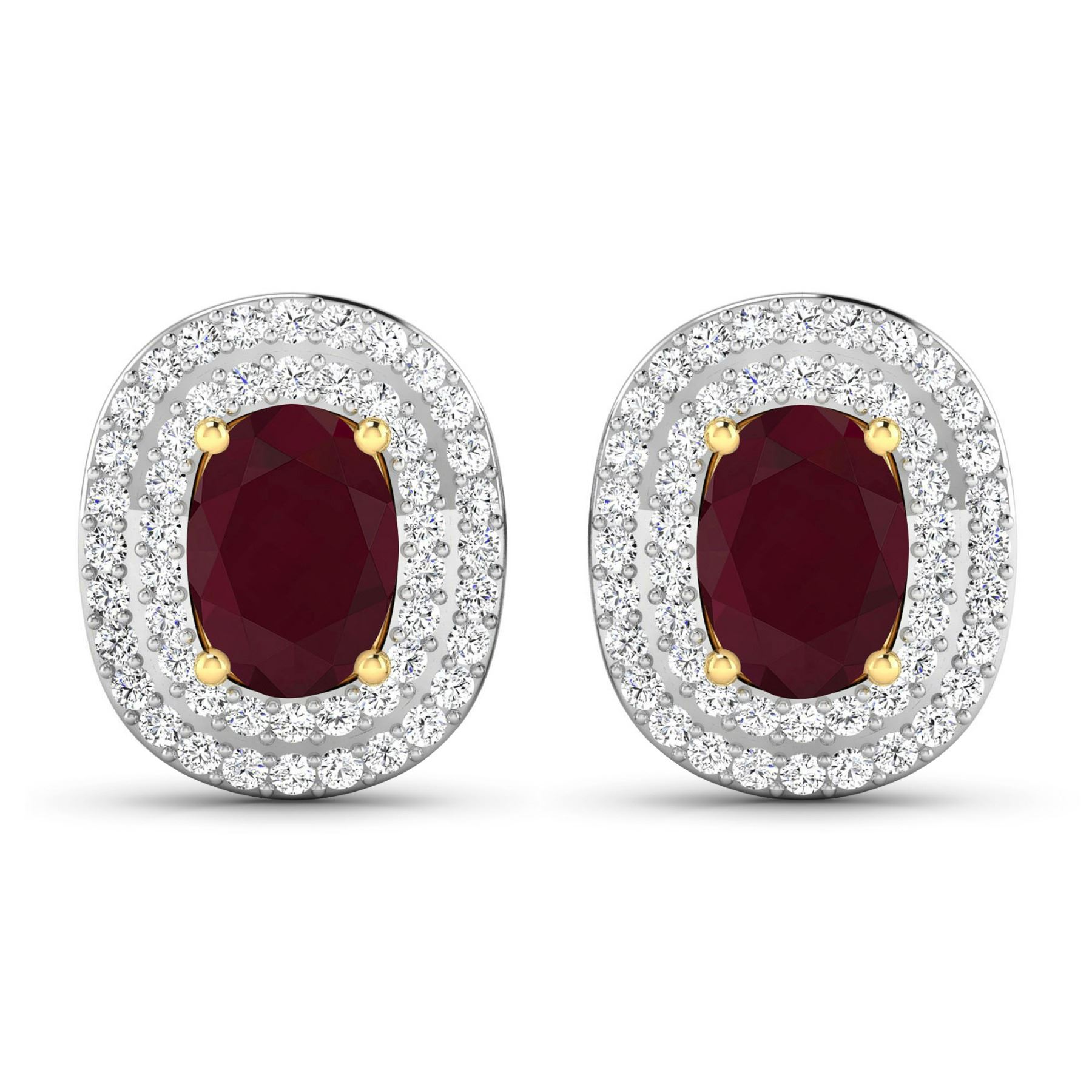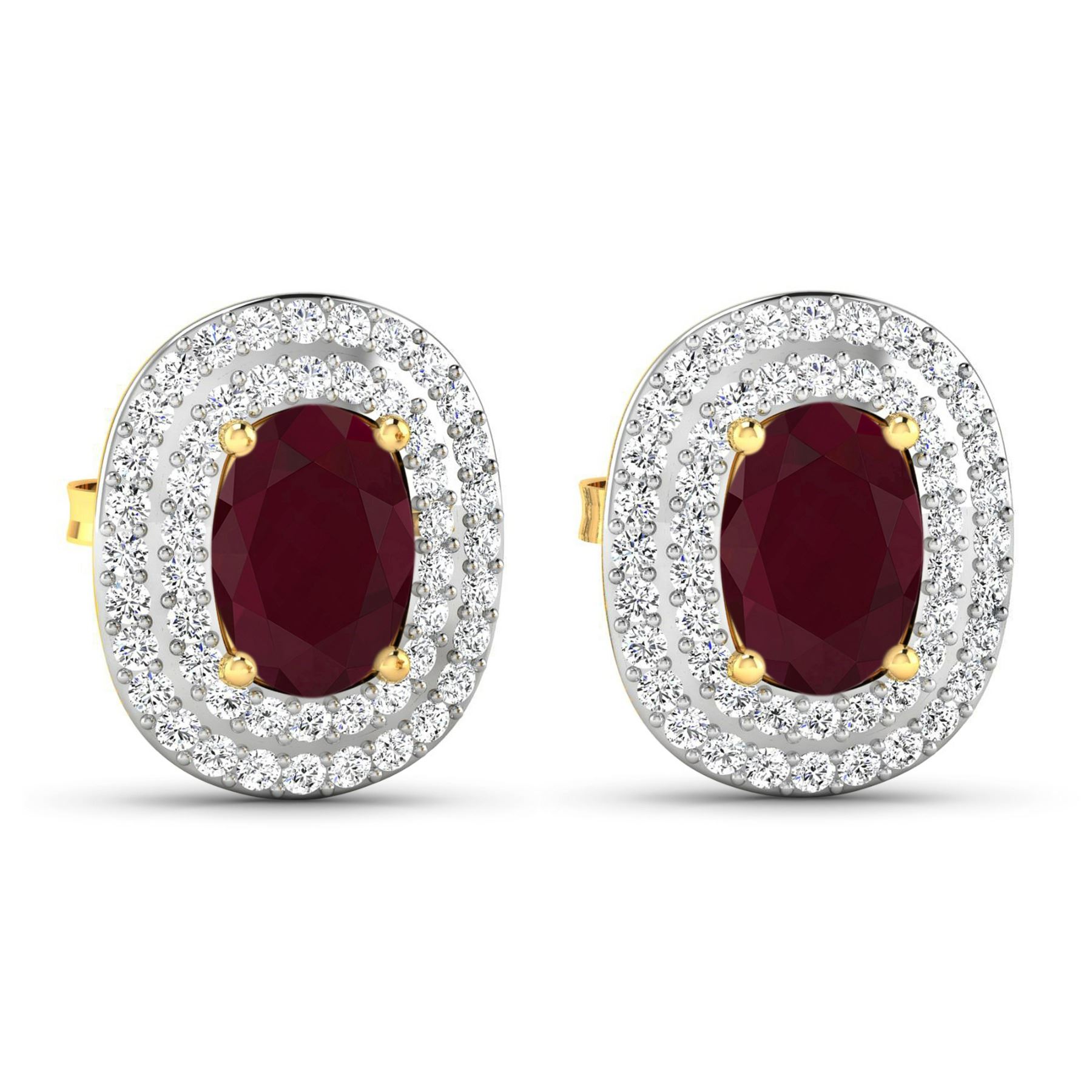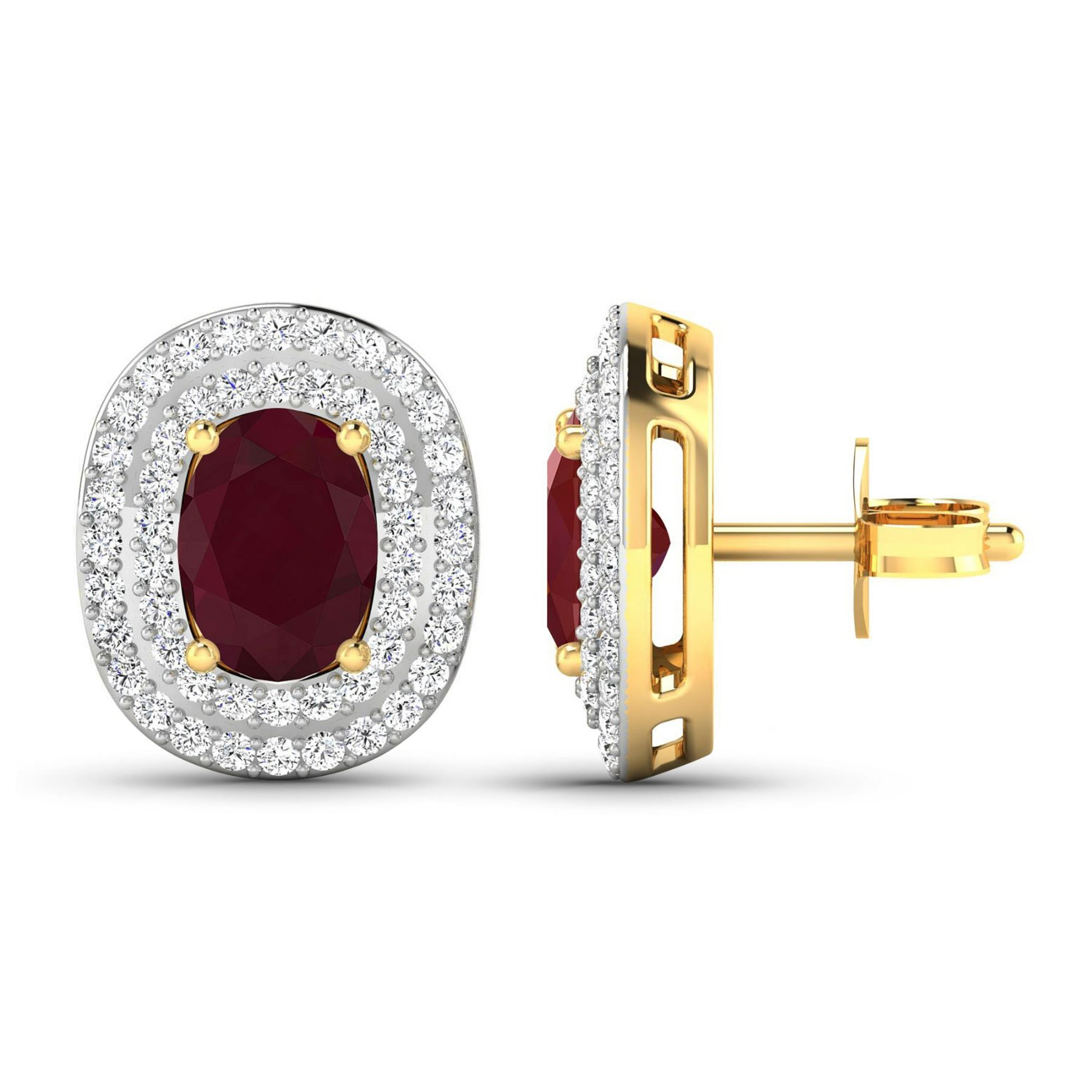 Ruby (AA) Oval 7x5mm - 2Pcs + White Diamond F/C Round 1.00mm - 100Pcs ( White Pan Rhodium ) (I1-I2/I color) ( Push Post ) Total weight of gemstones is 1.7cts. Total Diamond weight is 0.45cts. Total weight of these earrings are 2.83 grams.