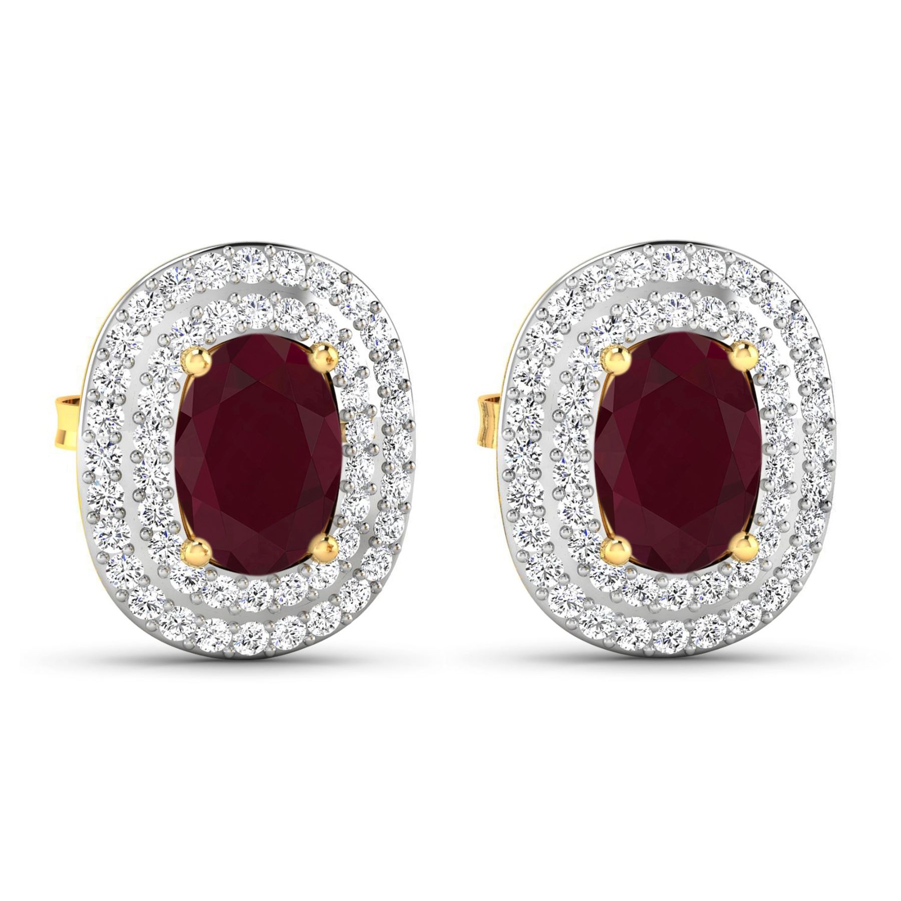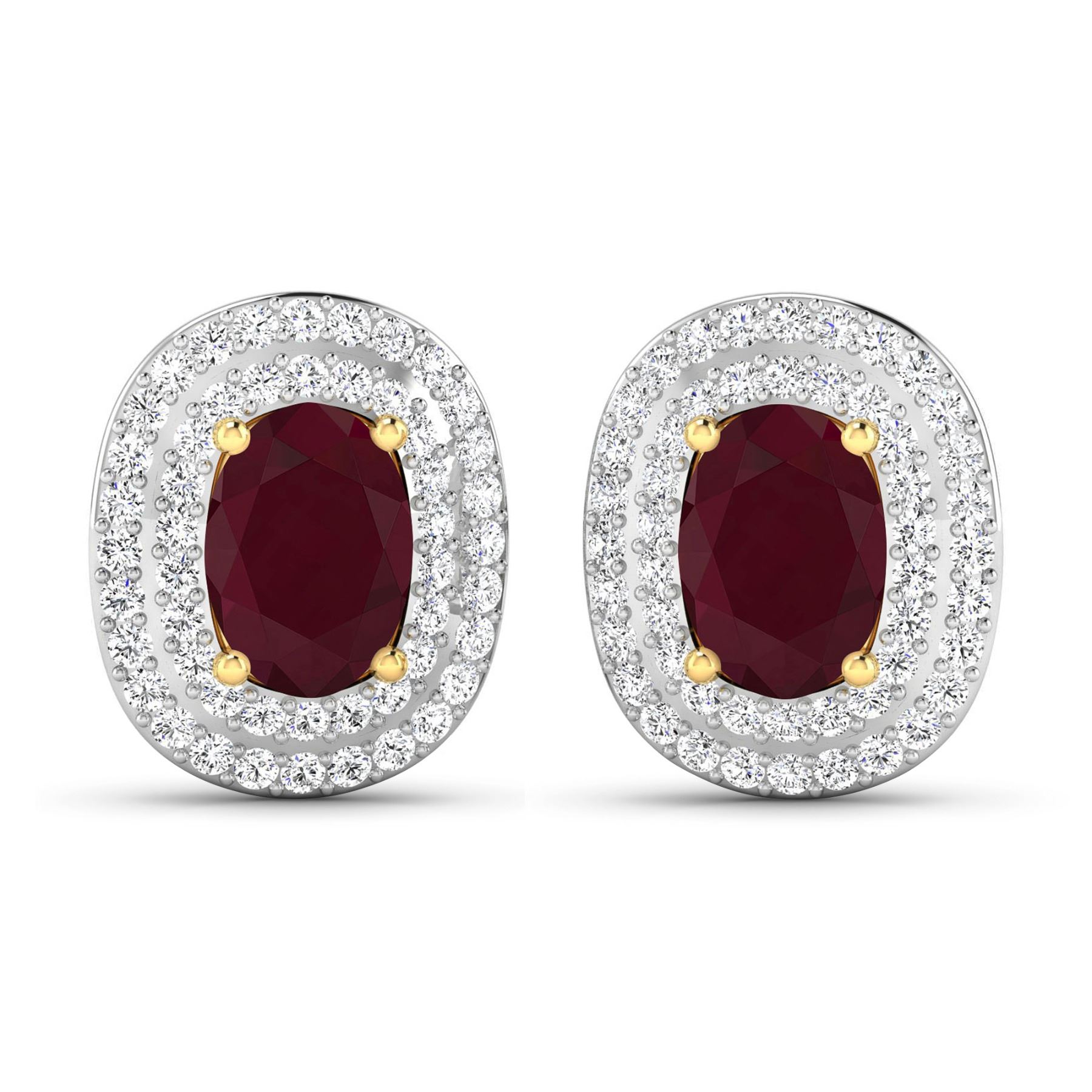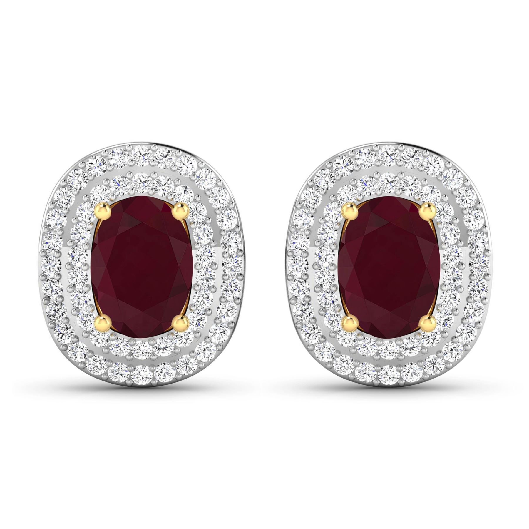 Ruby (AA) Oval 7x5mm - 2Pcs + White Diamond F/C Round 1.00mm - 100Pcs ( White Pan Rhodium ) (I1-I2/I color) ( Push Post ) Total weight of gemstones is 1.7cts. Total Diamond weight is 0.45cts. Total weight of these earrings are 2.83 grams.