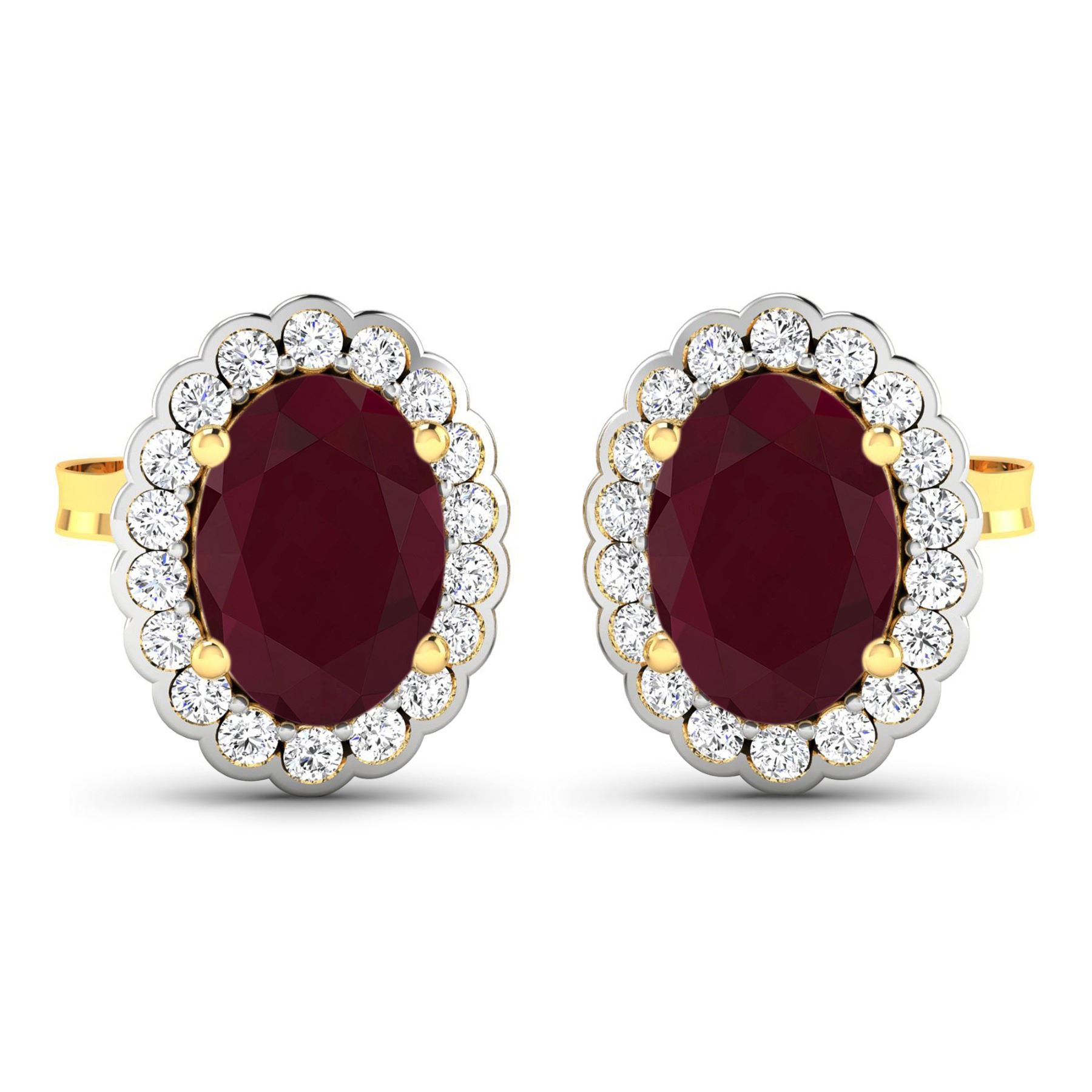 Ruby (AA) Oval 7x5mm - 2Pcs + White Diamond F/C Round 1.20mm - 36Pcs ( White Pan Rhodium ) (I1-I2/I color) ( Push Post ) Total weight of gemstones is 1.7cts. Total Diamond weight is 0.28cts. Total weight of these earrings are 2.61 grams.