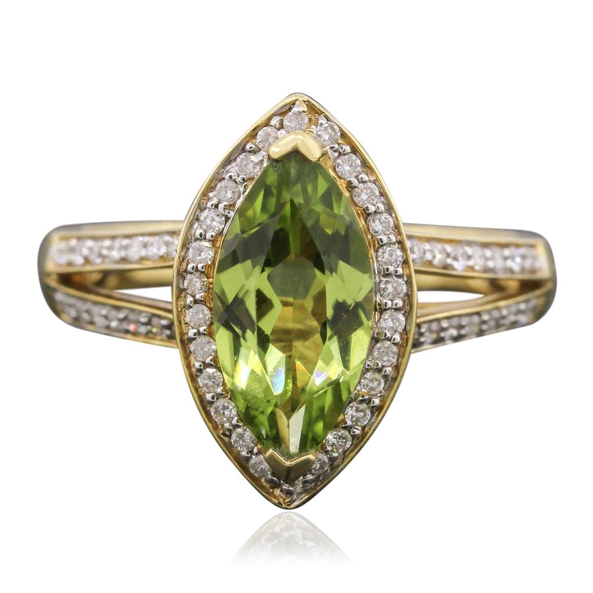 One ring featuring: 14KT yellow gold with a total weight of 5.43 grams, tsavorite with a total weight of 1.85ct, and diamonds with a total weight of 0.62ctw.