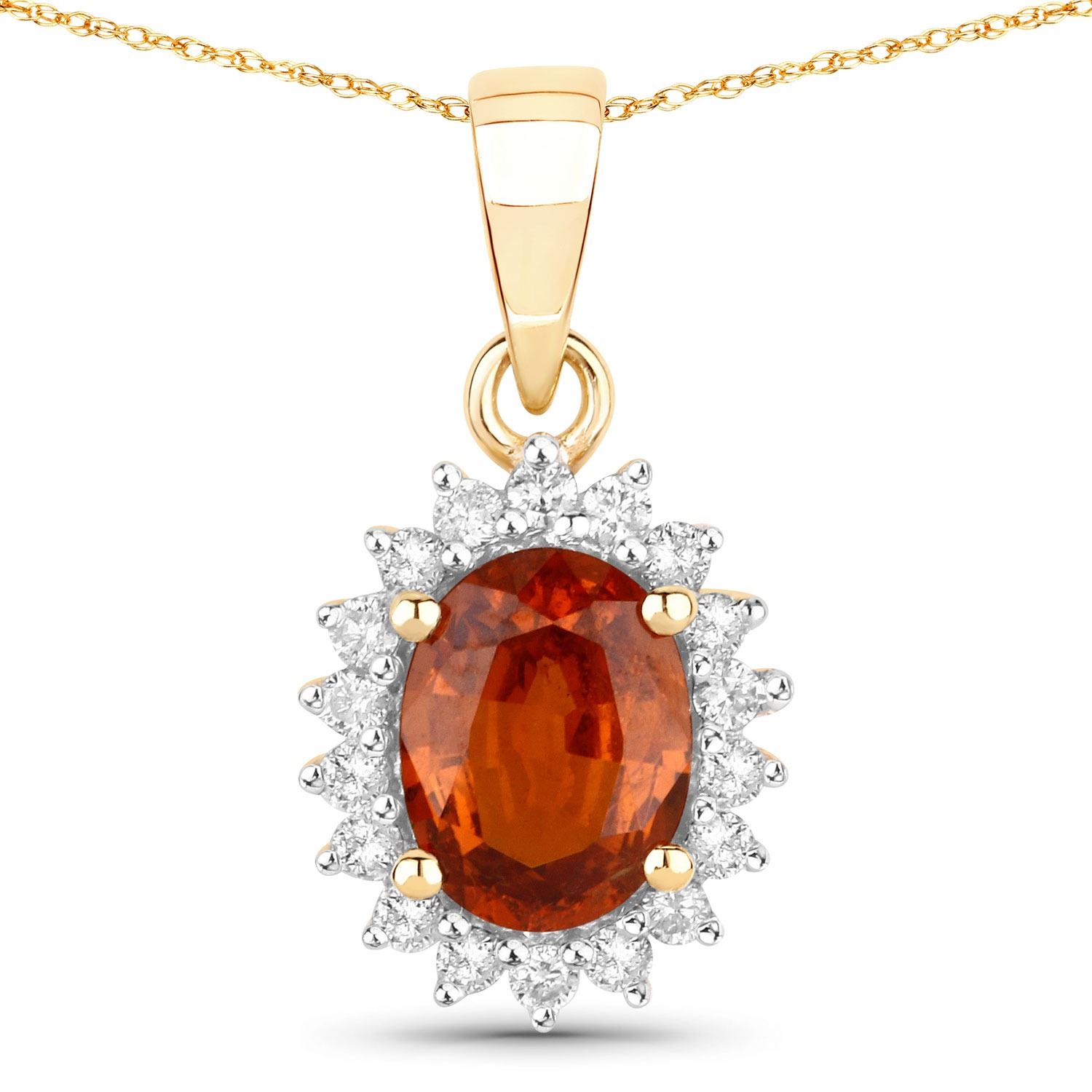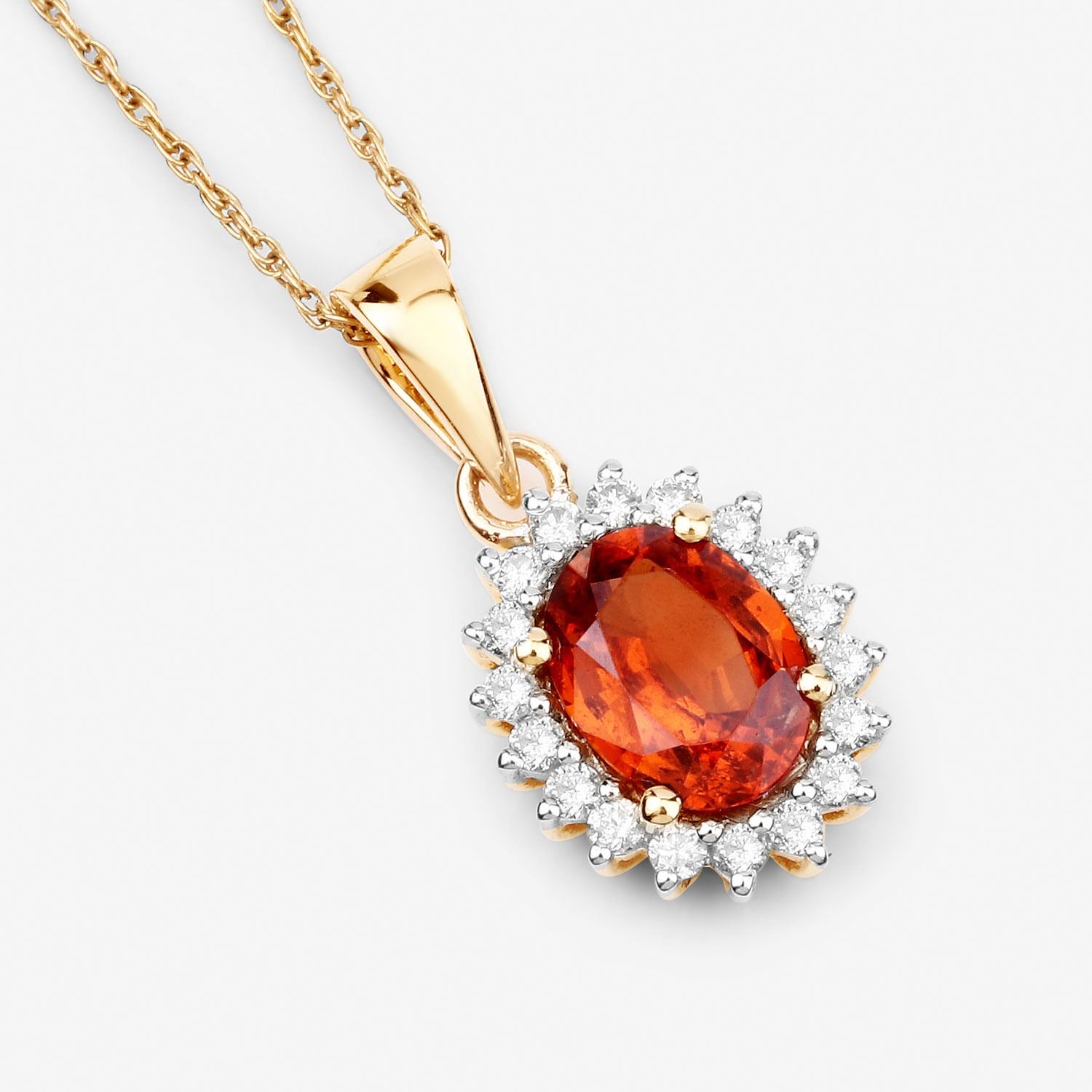 14KT Yellow Gold 1.87ctw Spessartite Garnet and White Diamond Pendant