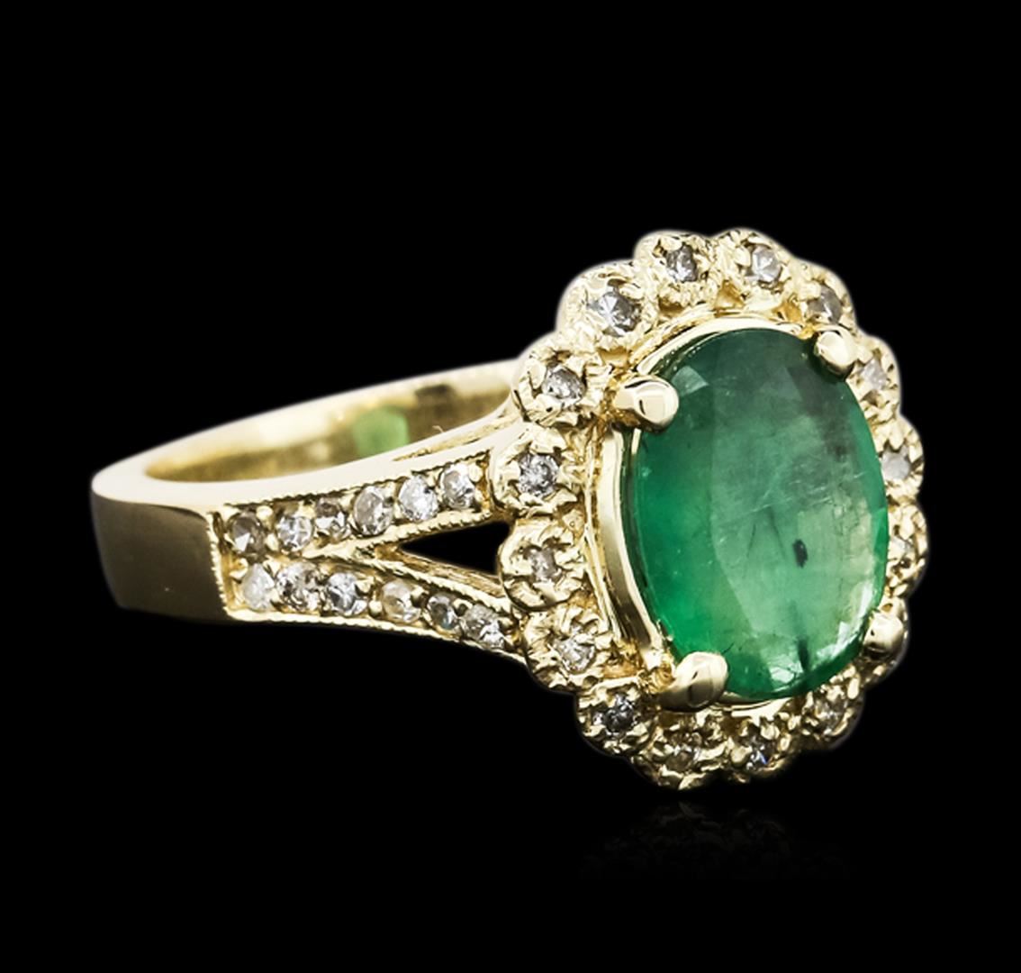 One ring featuring: 14KT yellow gold weighing 7.40 grams containing one emerald center stone with a total weight of 1.89ct and round diamonds with a total weight of 0.43cts.