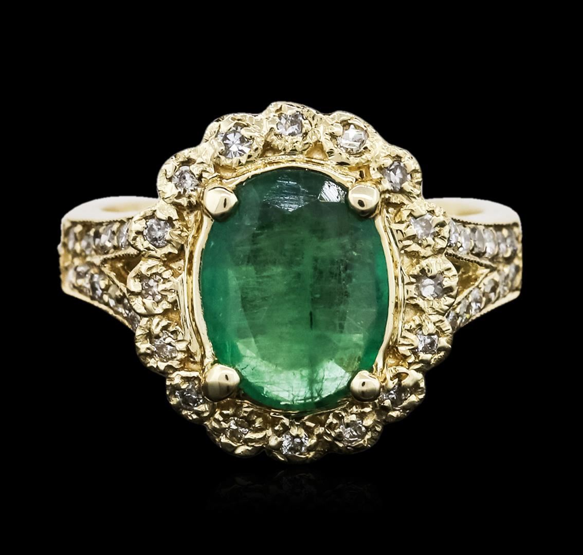 One ring featuring: 14KT yellow gold weighing 7.40 grams containing one emerald center stone with a total weight of 1.89ct and round diamonds with a total weight of 0.43cts.