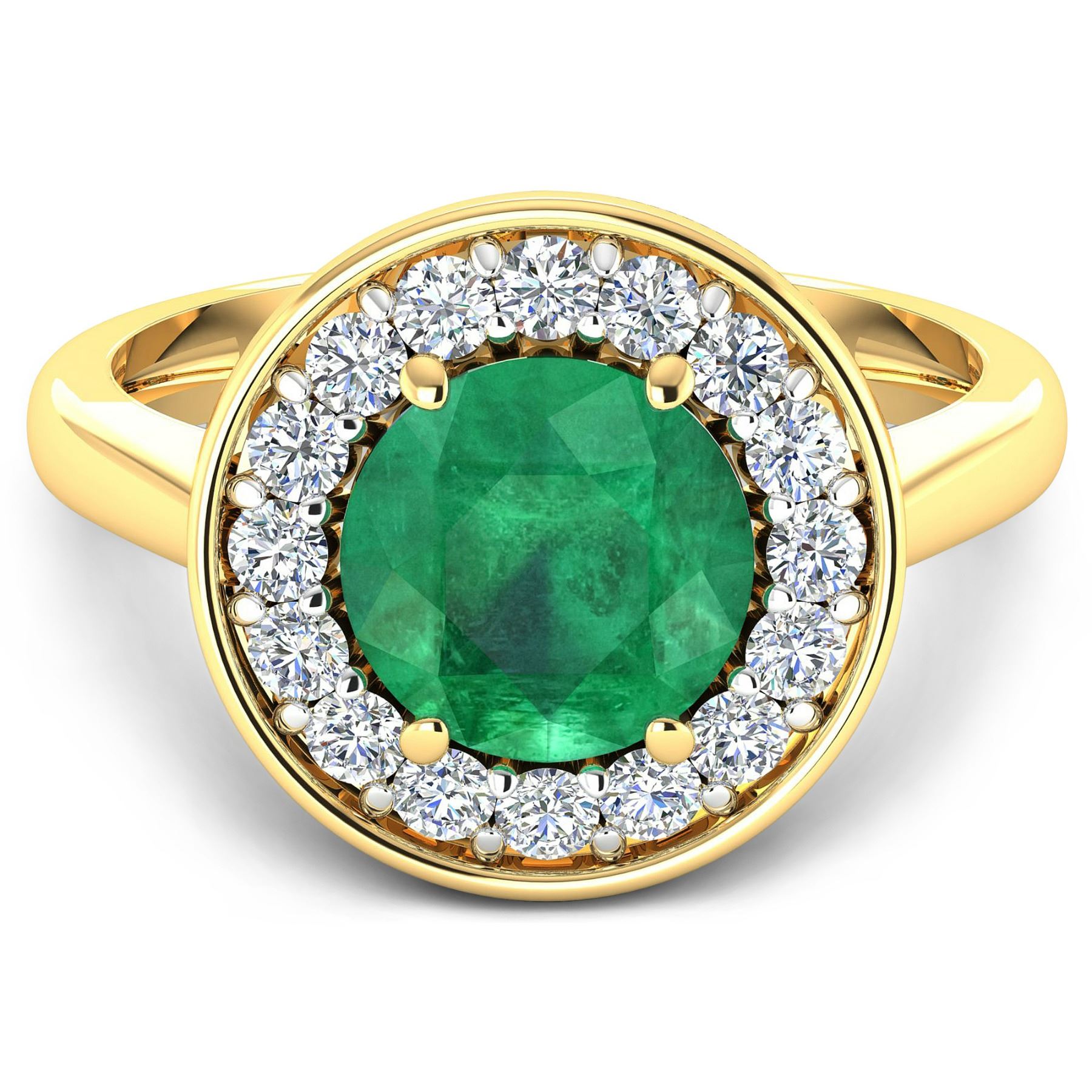 Zambian Emerald (AA) Round 8.00mm - 1Pc + White Diamond F/C Round 2.00mm - 16Pcs ( White Pan Rhodium ) ( Diamond Quality : SI-2/HI ). Total weight of gemstone is 1.8cts. Total weight of Diamonds is 0.48cts. Total weight of this ring is 3.92 grams. Ring size 7.