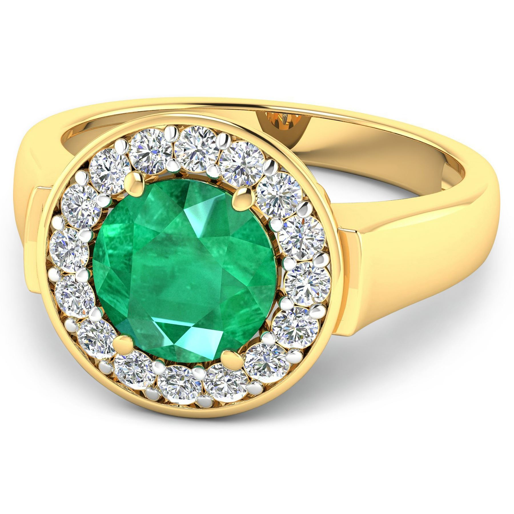 Zambian Emerald (AA) Round 8.00mm - 1Pc + White Diamond F/C Round 2.00mm - 16Pcs ( White Pan Rhodium ) ( Diamond Quality : SI-2/HI ). Total weight of gemstone is 1.8cts. Total weight of Diamonds is 0.48cts. Total weight of this ring is 4.02 grams. Ring size 7.